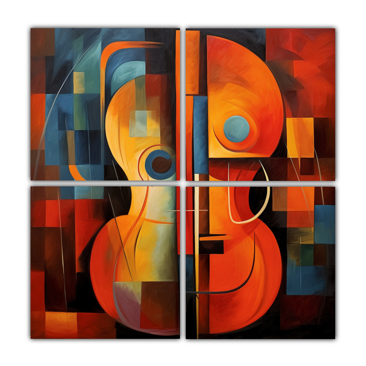 Cuadriptico Abstracto De Composición En Cello Profundas Emociones Cálidas