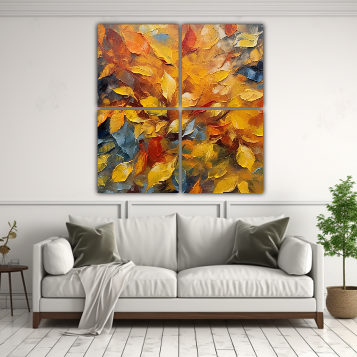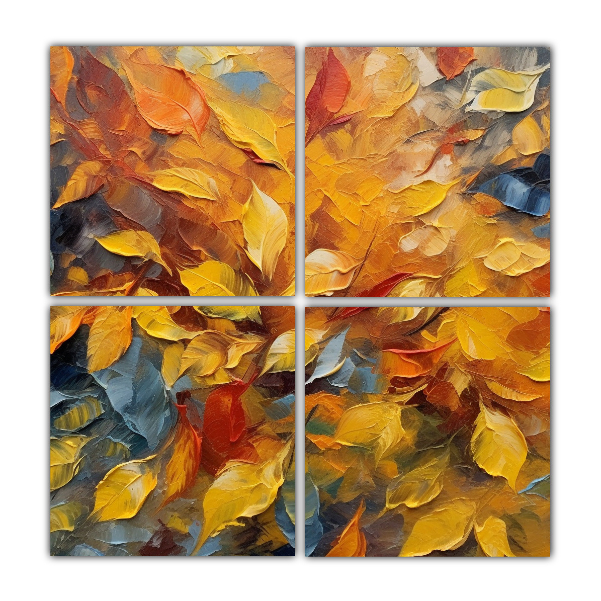 Cuadriptico Imagen Otoño Exuberante Pintura Abstracta Detalle Follaje Otoñal.