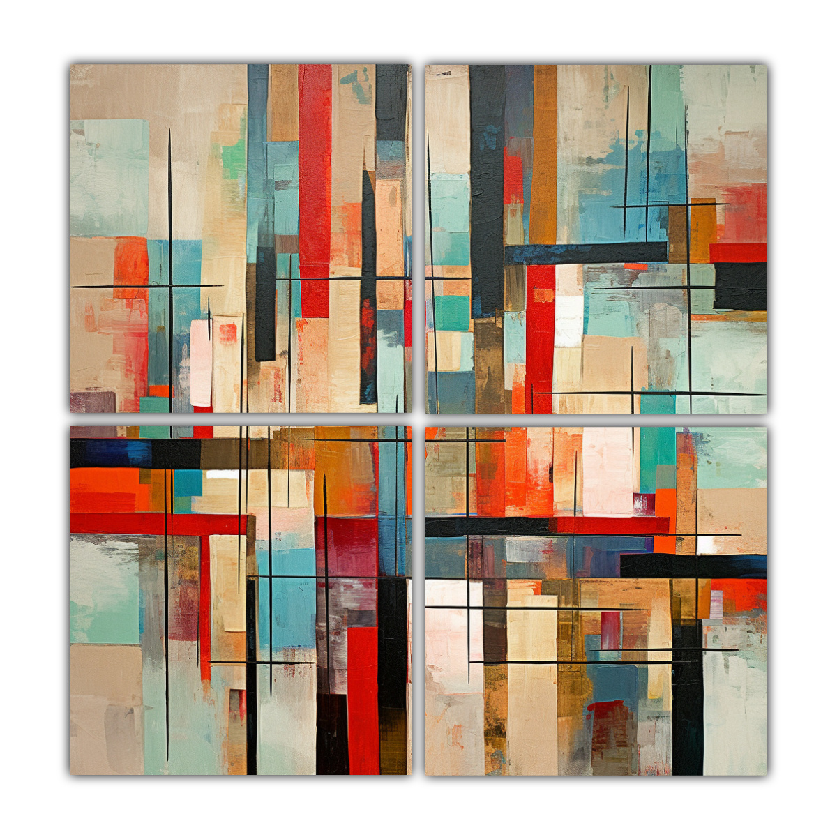 Cuadriptico Tela Sublimada Abstracto Con Líneas Paralelas Y Composición Aleatoria