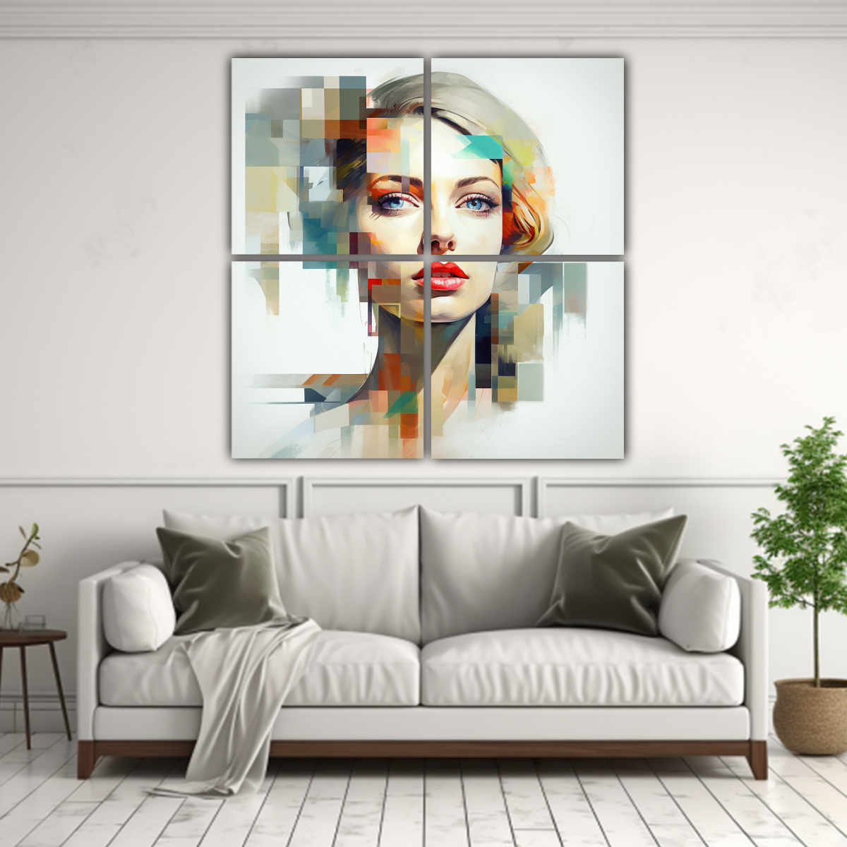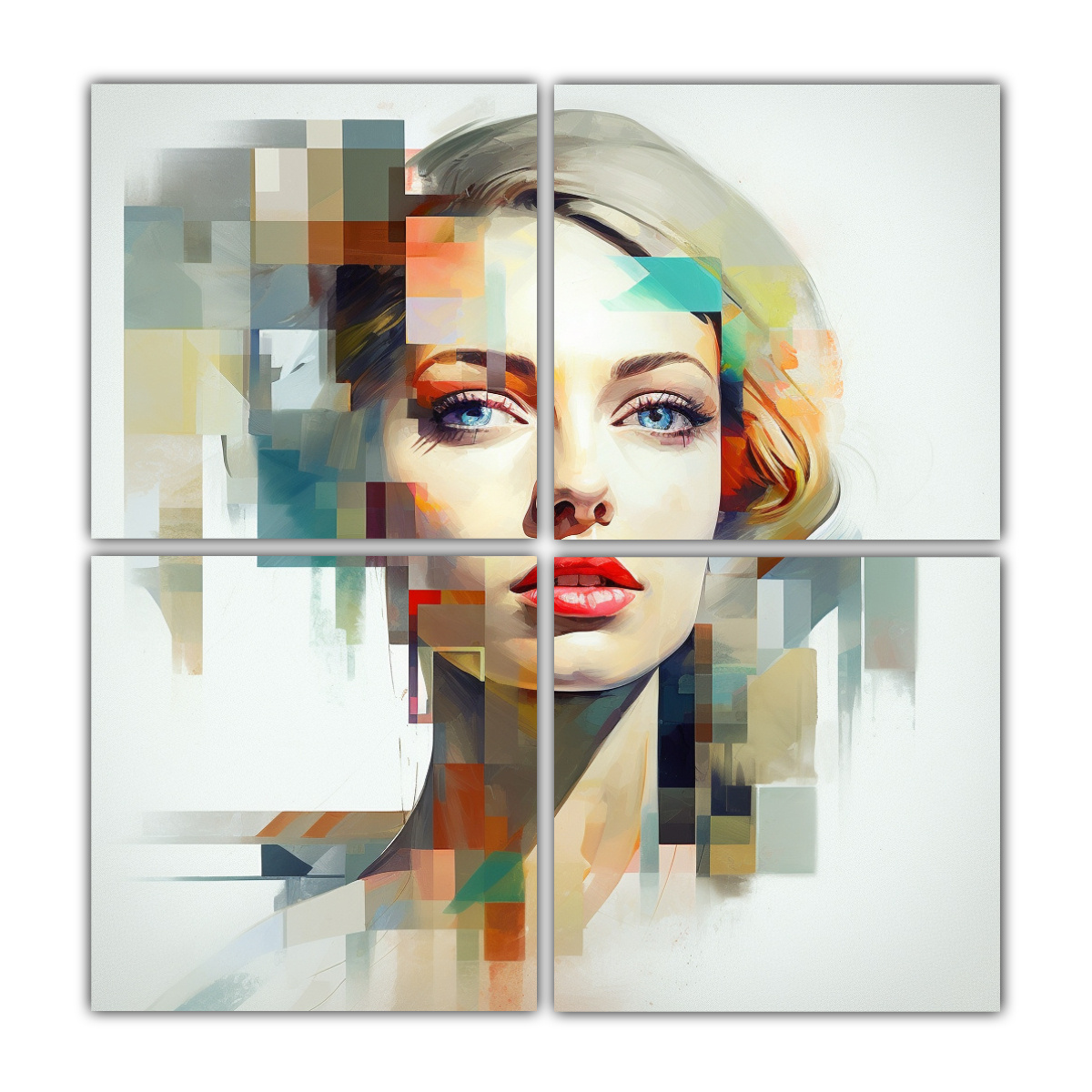 El cuadro ‘Cuadriptico Tela Sublimada Comedor: Hermosa joven rubia, ojos verdes, perfil de lado’ es ideal para agregar un toque de belleza y distinción a tu comedor Con colores como beige, azul marino grisaceo, carmesí, gris, plateado, turquesa y lila, este cuadro aportará armonía y estilo a tu ambiente