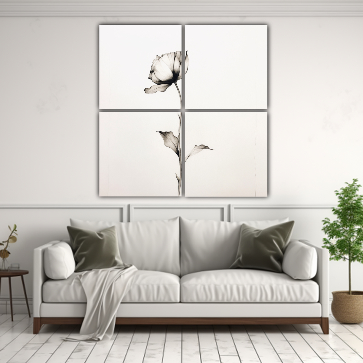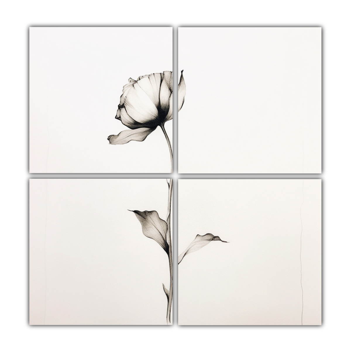 El Cuadriptico Tema Calma es un dibujo analítico en línea continua impreso en tela de alta calidad con bastidores de madera Combina los tonos beige, azul marino grisaceo, gris y plateado para crear un ambiente sereno y relajante en tu espacio Envío rápido y gratuito en Santiago