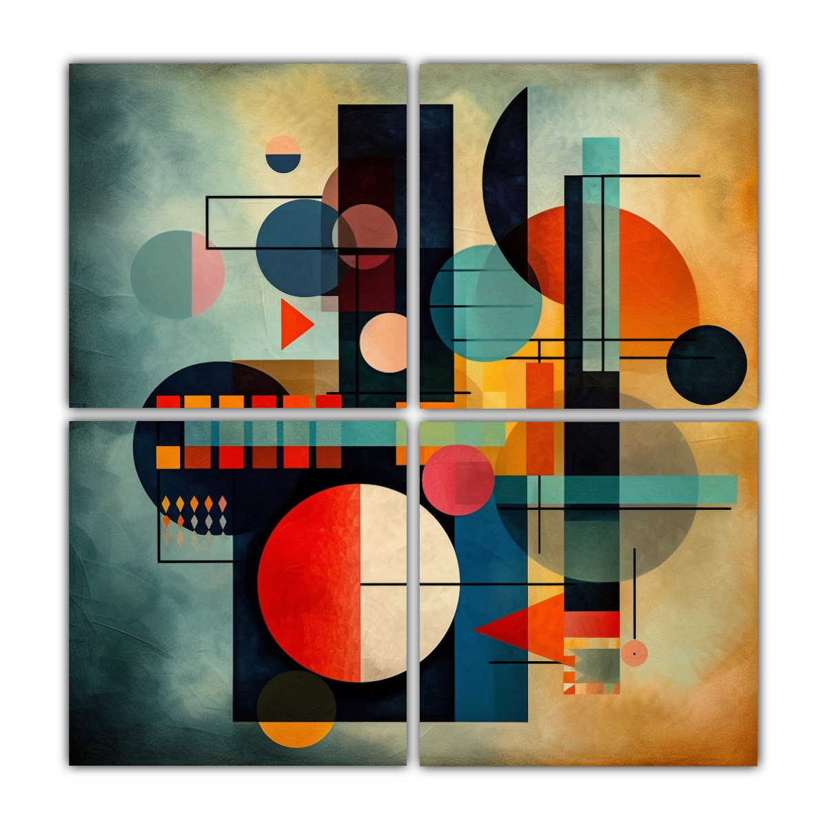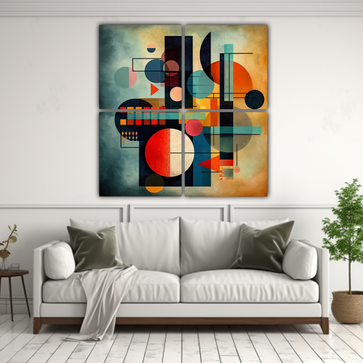 DecoCuadros te ofrece el cuadriptico Vitalidad Abstracto Formas Geométricas Expresivas en una impresión de alta calidad en tela con bastidores de madera Combina los colores Gris, Azul Marino grisaceo, Carmesi, Mostaza, Plateado, Coral y Menta para darle vida y expresión a tu espacio Adquiere nuestros cuadros con diseños exclusivos y disfruta de las entregas más rápidas y gratuitas en Santiago, además de envíos a regiones express
