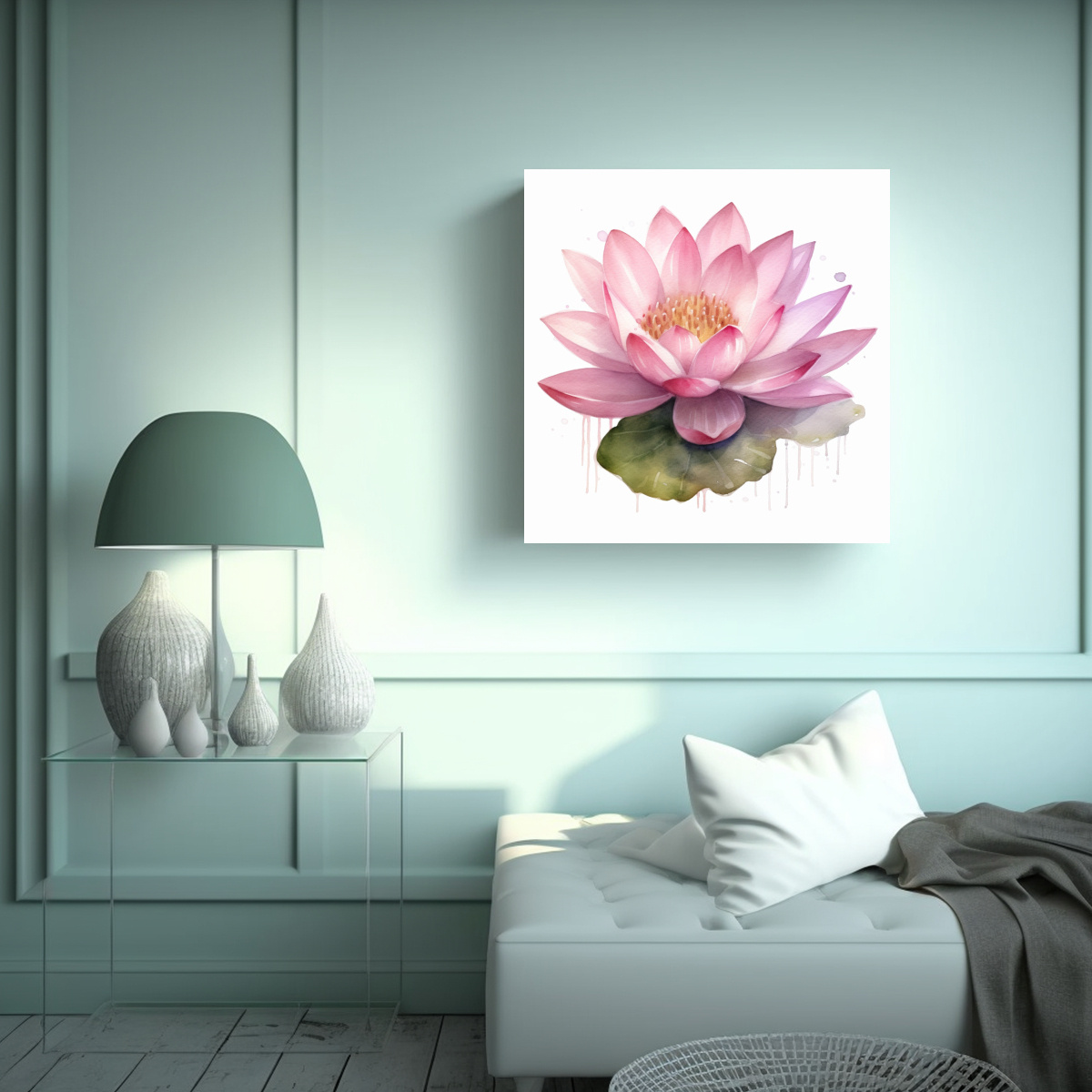 Cuadro Abstracción Ambiente Con Loto Rosa Estilo Acuarela 0569