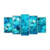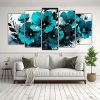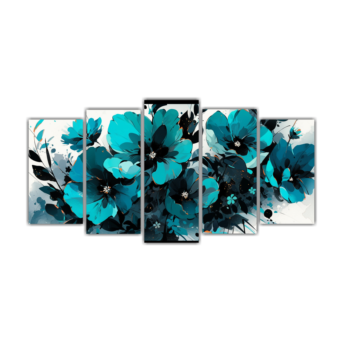 Cuadro Abstracción Turquesa Y Negro Neonoir En Decoración Con Cinco Telas En Bastidor