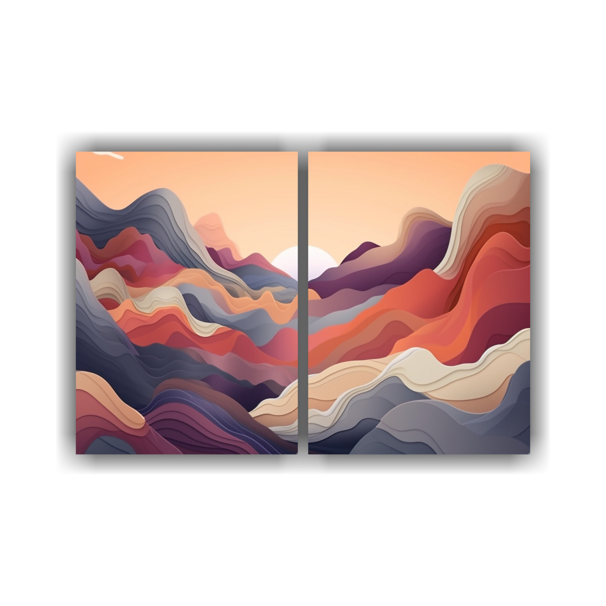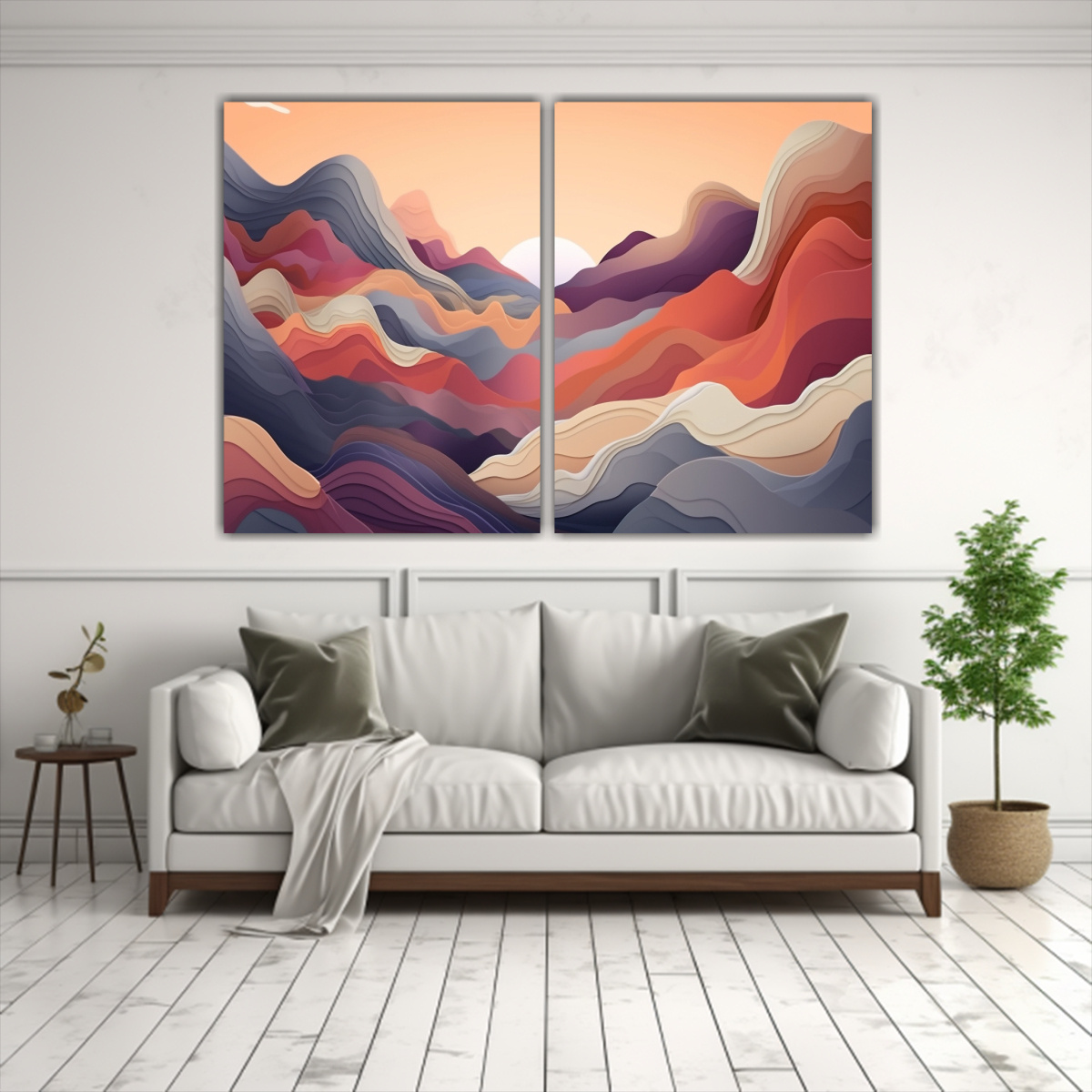 Cuadro Abstracta De Textura De Papel Tapiz De Montaña Y Cañón Con Dos Cuadros Para Decoración De Oficina.