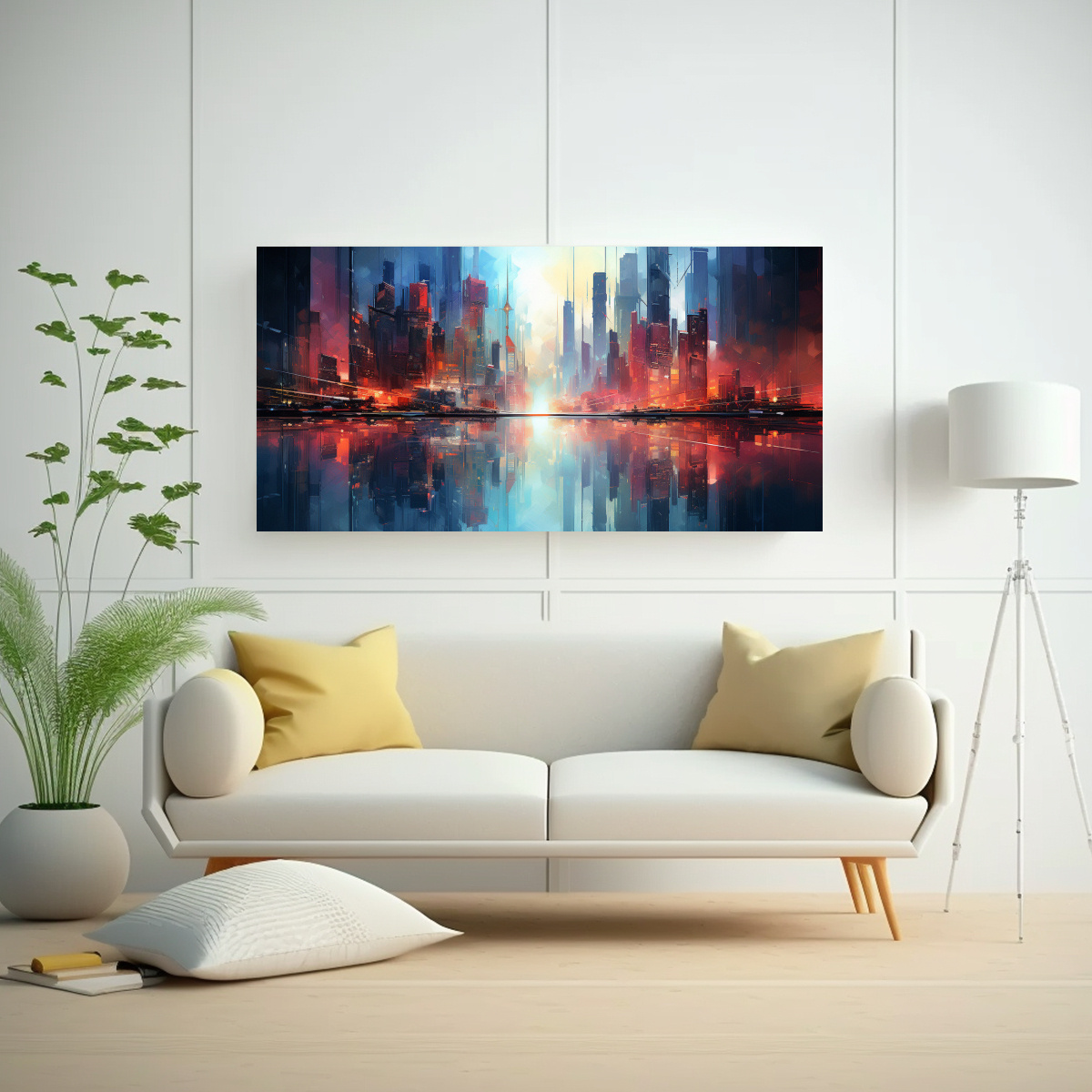 Coloca el Cuadro Abstracto Acuarela Ciudad Innovadora en tu sala de estar para crear un ambiente sofisticado y vanguardista Combínalo con muebles en tonos neutros como blanco o gris y agrega detalles en dorado para resaltar los colores del cuadro También puedes colocarlo en tu estudio o en la oficina para inspirarte con su diseño innovador Sea cual sea el lugar que elijas, este cuadro será el centro de atención y le dará un toque de elegancia a tu espacio