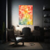 Este cuadro abstracto acuarela líneas finas detalle salpicaduras colores cálidos es perfecto para darle vida a tu sala de estar Colócalo sobre un sofá de tonos neutros para crear un contraste vibrante y moderno También puedes combinarlo con cojines y cortinas en los mismos colores para lograr una armonía visual ¡Atrévete a darle un toque único a tu espacio con este cuadro de diseño exclusivo de DecoCuadros!