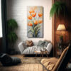 Coloca este cuadro abstracto de tulipanes naranjas en tu sala de estar para crear un ambiente alegre y vibrante Combínalo con muebles de colores neutros como beige o gris para resaltar los tonos vibrantes del cuadro También puedes colocarlo en el comedor o en la entrada para darle un toque de color a esos espacios ¡Este cuadro será el centro de atención y añadirá vida a cualquier ambiente!