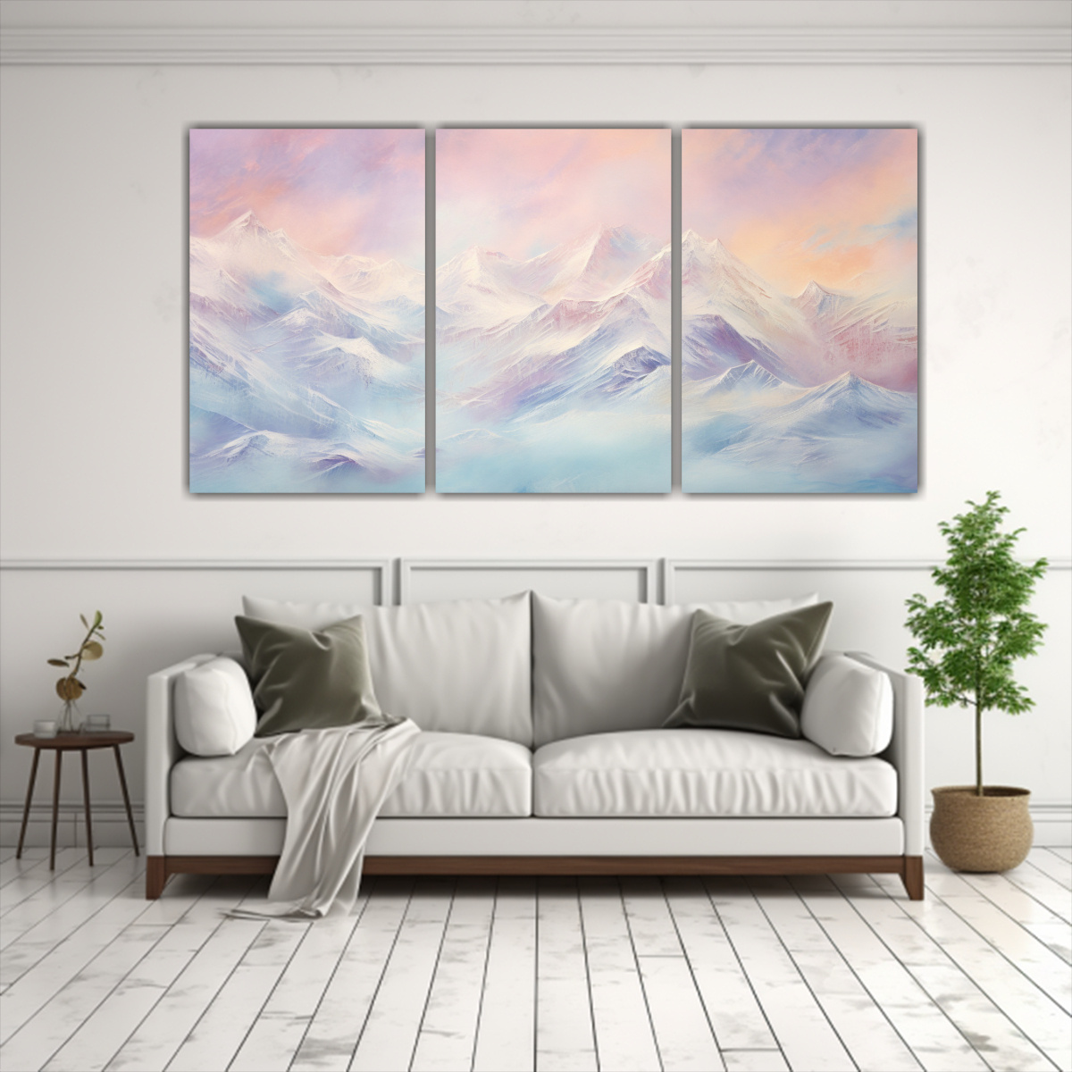 Cuadro Abstracto Alegría En Montañas Nevadas Con Colores Pasteles