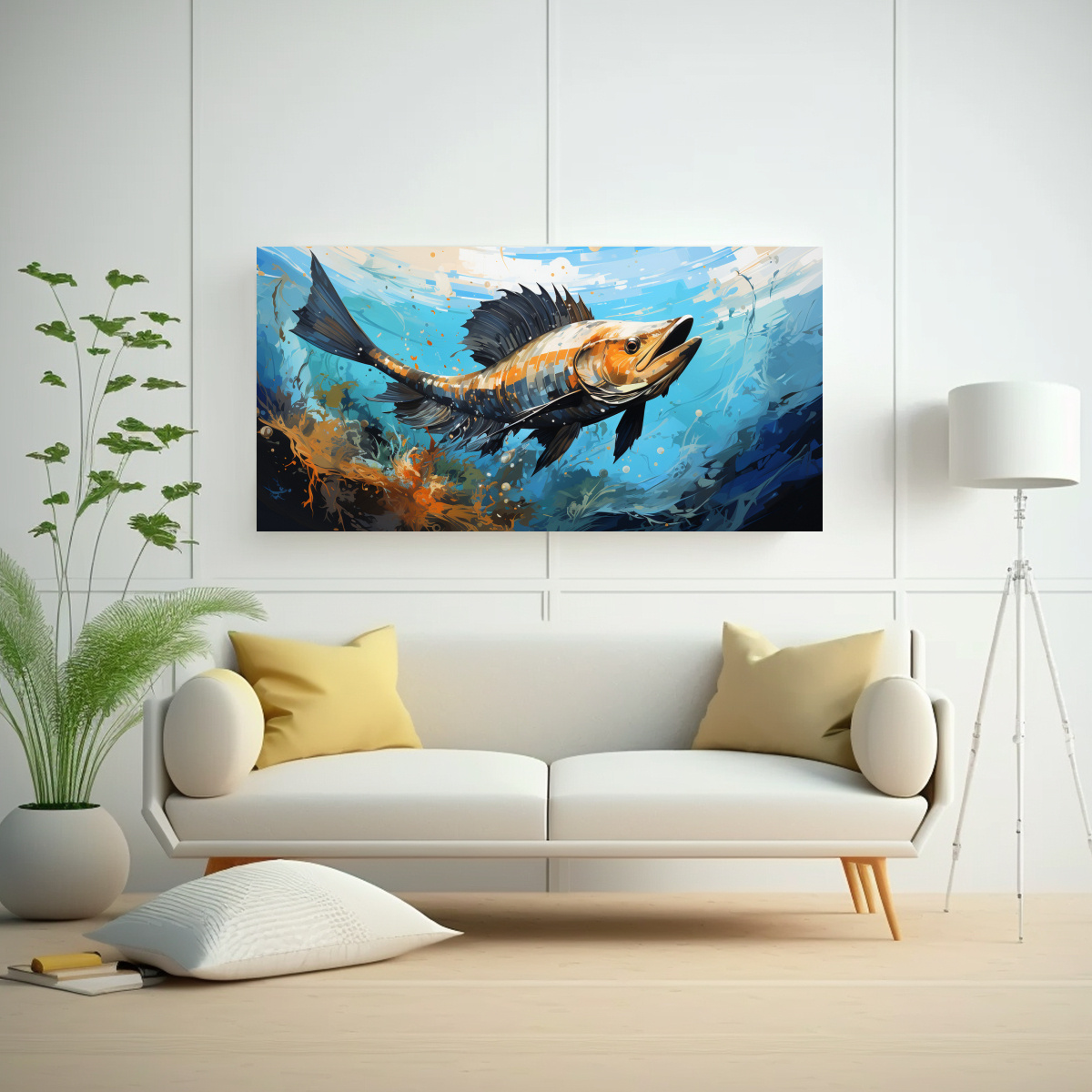 Descubre este cuadro con detalles intrincados de un Sailfish en tonos Turquesa, Beige, Azul Marino grisaceo, Gris, Chocolate, Coral, Verde Azulado y Carmesí Aporta modernidad y elegancia a tu espacio