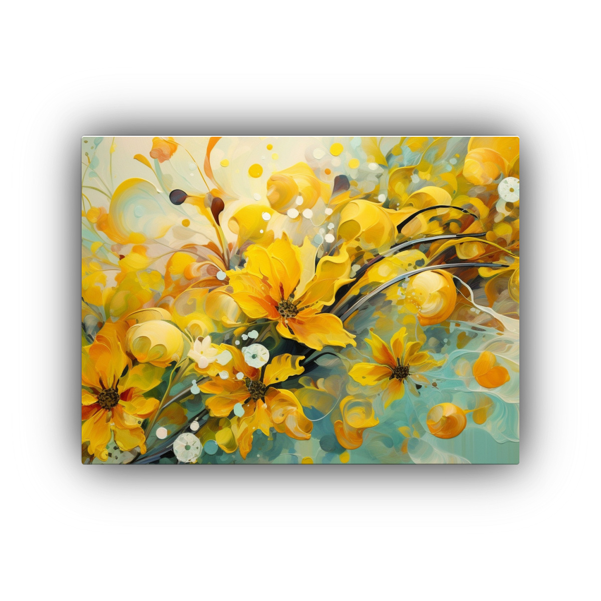 Este cuadro abstracto con tonos amarillos y florales es ideal para decorar tu sala de estar o dormitorio Combínalo con muebles en tonos neutros como blanco, beige o gris para lograr un ambiente armonioso y elegante