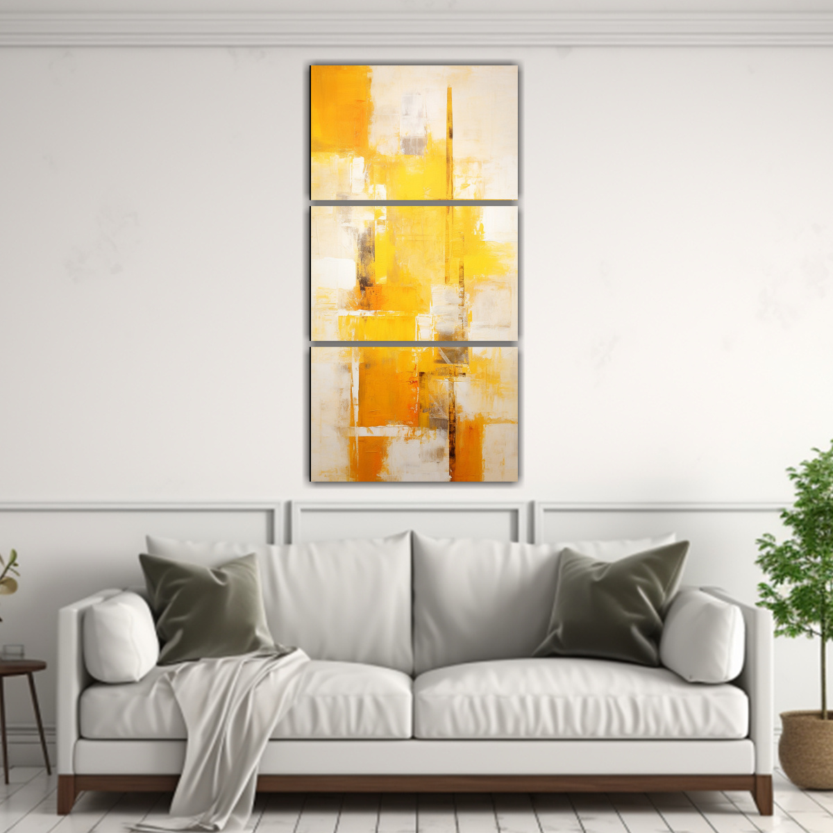 Este cuadro abstracto amarillo sería perfecto para decorar una sala de estar o un dormitorio Puedes colocarlo sobre un sofá o una cama para crear un punto focal en la habitación Combina este cuadro con cojines y cortinas en tonos neutros como blanco, beige o gris para crear un ambiente elegante y sofisticado También puedes colocarlo en un pasillo o en la entrada de tu casa para darle la bienvenida a tus invitados con un toque de color y estilo