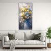 Este Cuadro Abstracto Amarillo y Azul con Esquema de Flores en Lienzo es perfecto para decorar salas de estar o dormitorios Su combinación de colores plateado, mostaza, azul marino grisaceo, gris y verde azulado se adapta a diferentes estilos de decoración Te recomendamos colocarlo sobre una pared de color blanco o gris claro, para que resalte y añada un toque de color y alegría al ambiente Combínalo con muebles de tonos neutros y accesorios en colores similares para crear una armonía visual ¡Dale un toque único a tu espacio con este maravilloso cuadro!