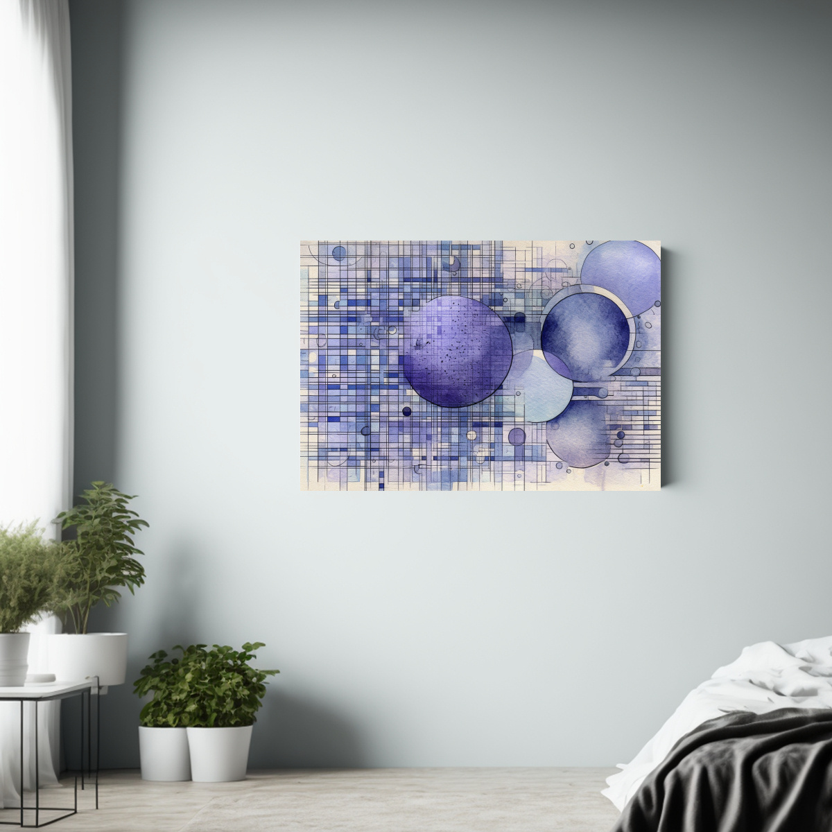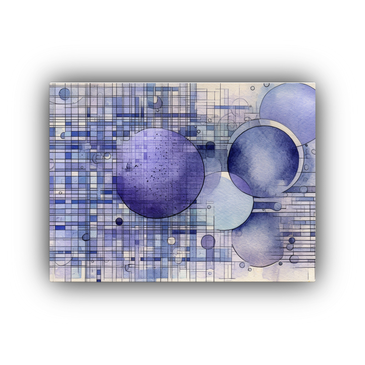 Cuadro Abstracto Azul Con Círculos, Rectángulos Y Líneas, Luminosidad.