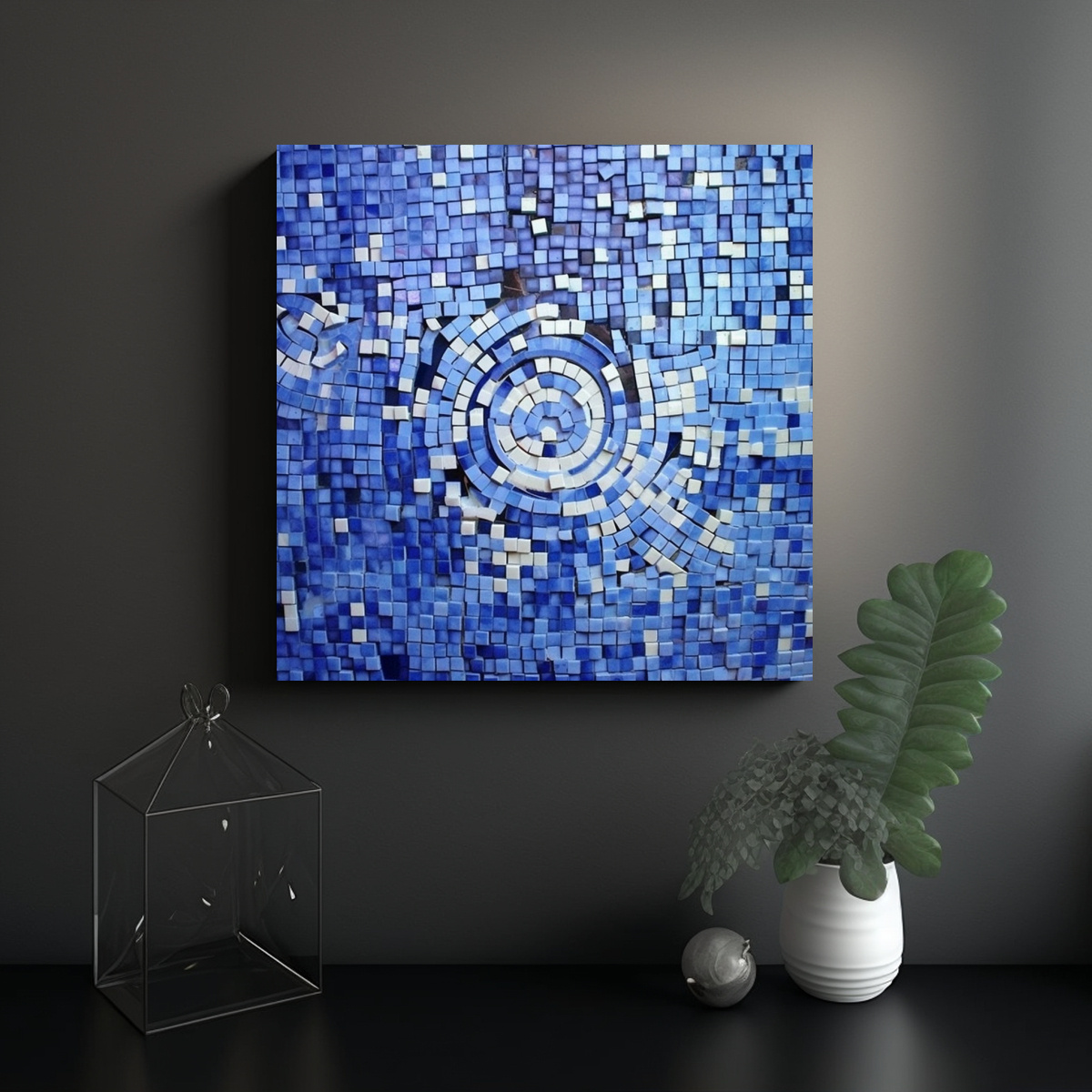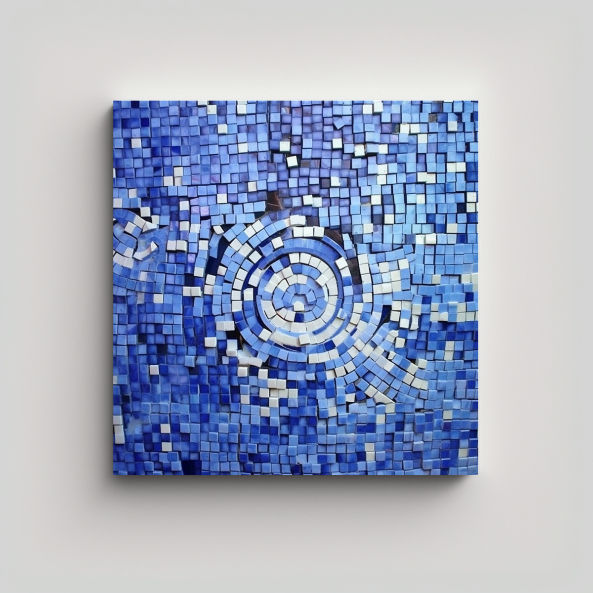 Cuadro Abstracto Azul Y Blanco Estilo Mosaico De Pared