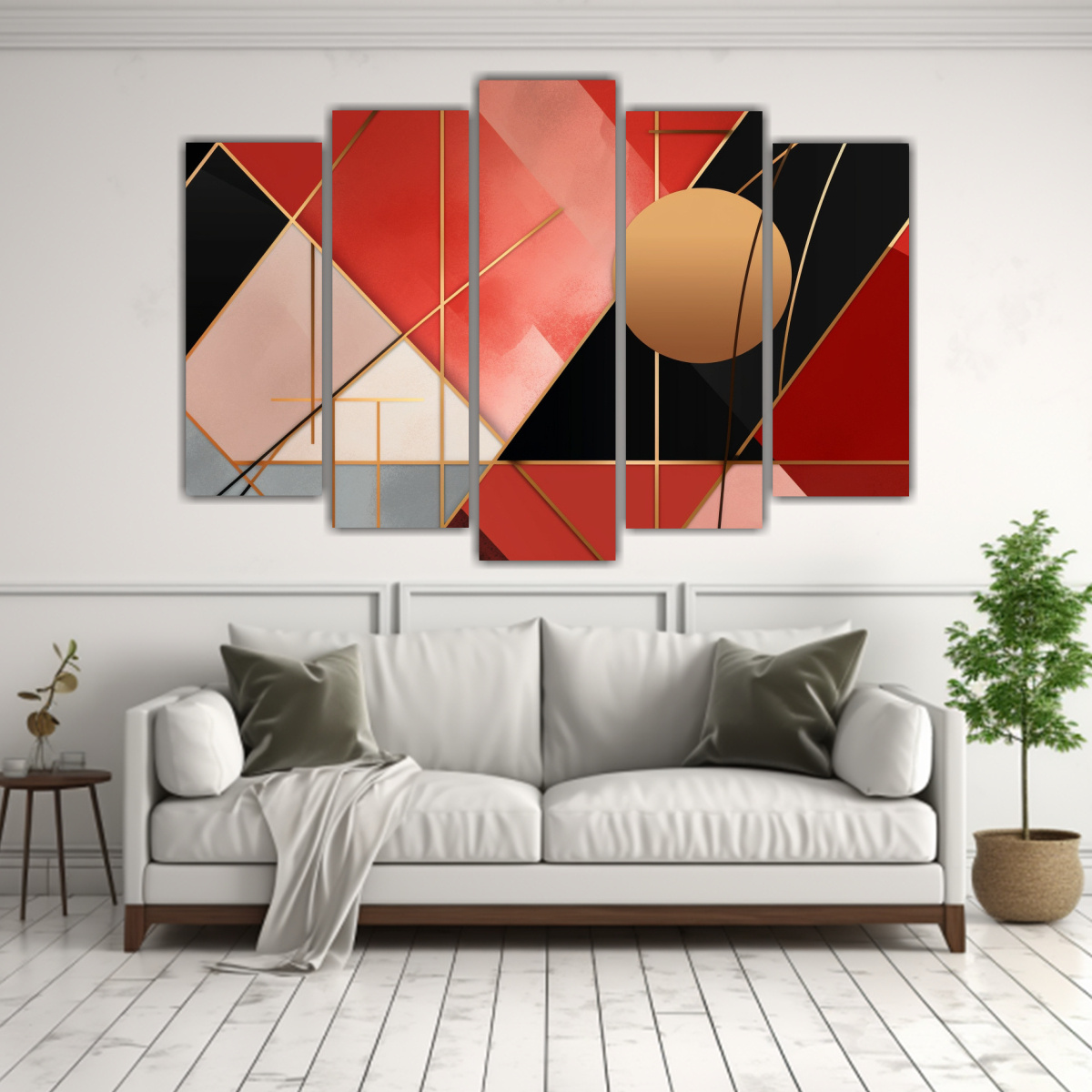Cuadro Abstracto Baño Moderno Y Elegante Con Diseño Dorado