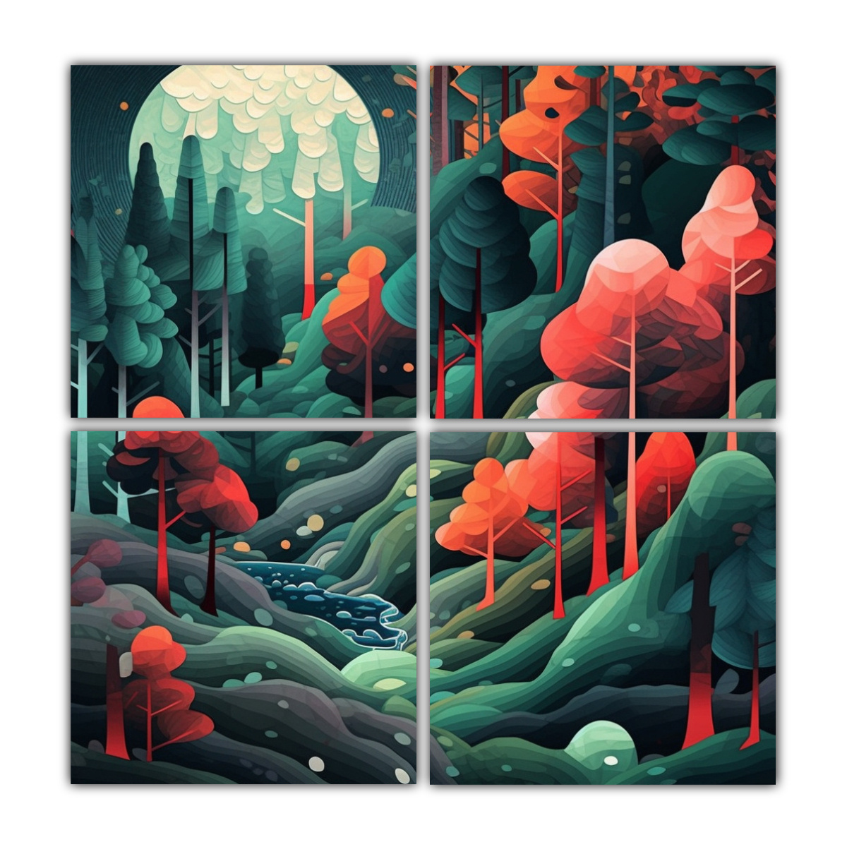 DecoCuadros presenta el Cuadro Abstracto Bosque Armónica estilo Japonés Este cuadro de cuatro lienzos combina los colores Coral, Azul Marino grisáceo, Turquesa, Gris, Plateado y Carmesí en un diseño abstracto inspirado en paisajes japoneses Confeccionado con tela de alta calidad y bastidores de madera, ofrece la mejor calidad del mercado a precios accesibles Aporta armonía cromática y estilo a tu espacio con este cuadro exclusivo de DecoCuadros Envío gratis en Santiago y envíos express a regiones