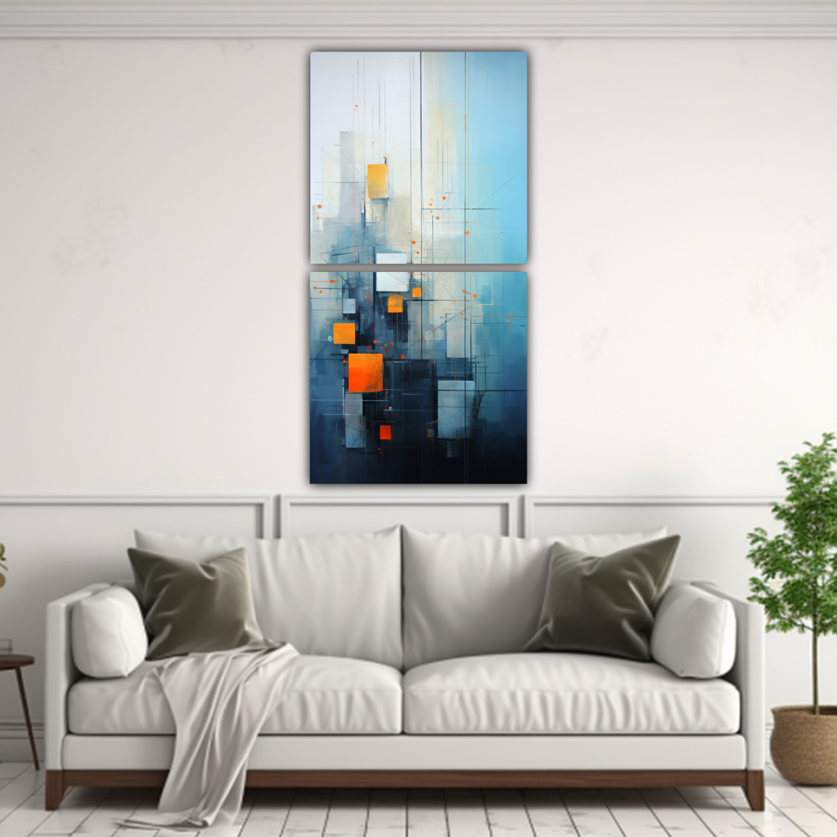 Cuadro Abstracto Composición Dinámica En Azul Y Naranja Para Decorar