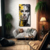 Este cuadro es perfecto para decorar una sala de estar moderna Puede colocarse encima de un sofá de tonos neutros para añadir un toque de color y brillo al ambiente También puede ser colocado en un pasillo, junto a una lámpara, para crear un punto focal en la decoración Su composición equilibrada y sus tonos plateado y amarillo le darán un toque de elegancia y sofisticación a cualquier espacio
