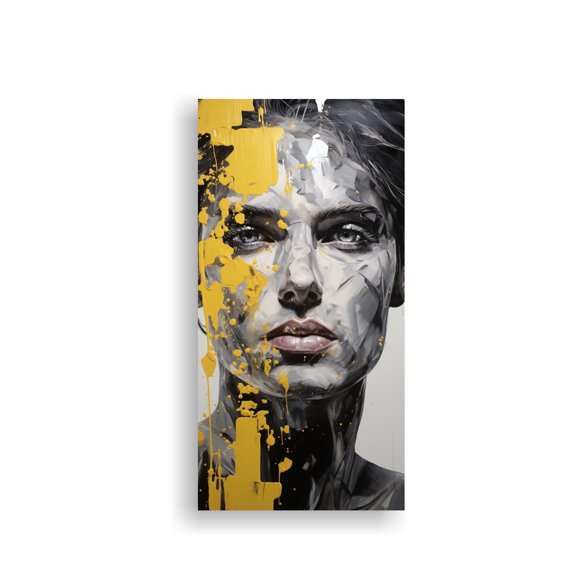 Cuadro Abstracto Composición Facial Equilibrada Contornos Y Salpicaduras Plata Y Amarillo El