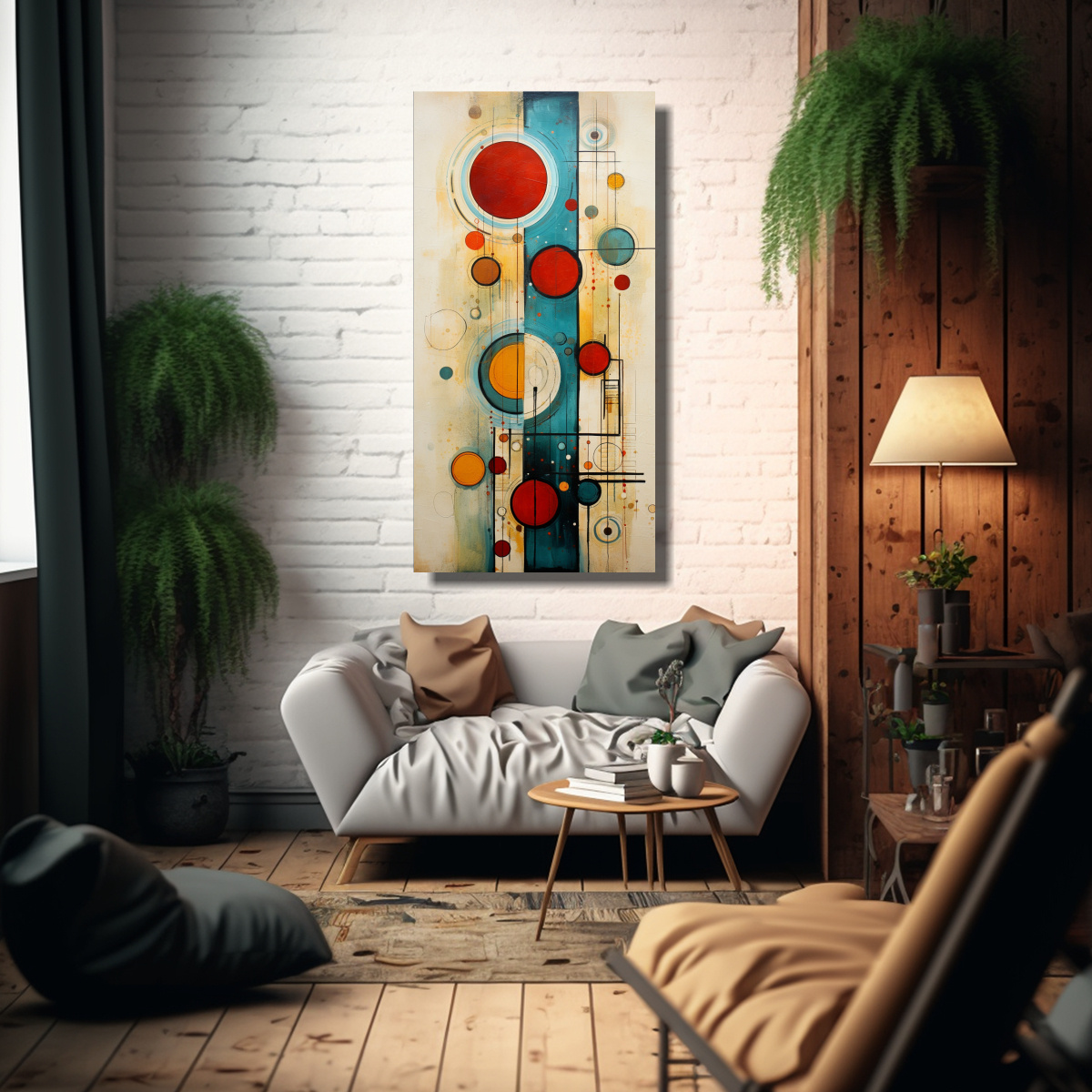 Este cuadro abstracto con círculos en estilo temático es perfecto para decorar tu sala de estar o comedor Combínalo con muebles de estilo contemporáneo en tonos neutros como el blanco o el gris para crear un ambiente sofisticado y moderno También puedes colocarlo en un estudio o dormitorio para añadir un toque de color y creatividad ¡Deja volar tu imaginación y crea espacios únicos con este cuadro exclusivo de DecoCuadros!