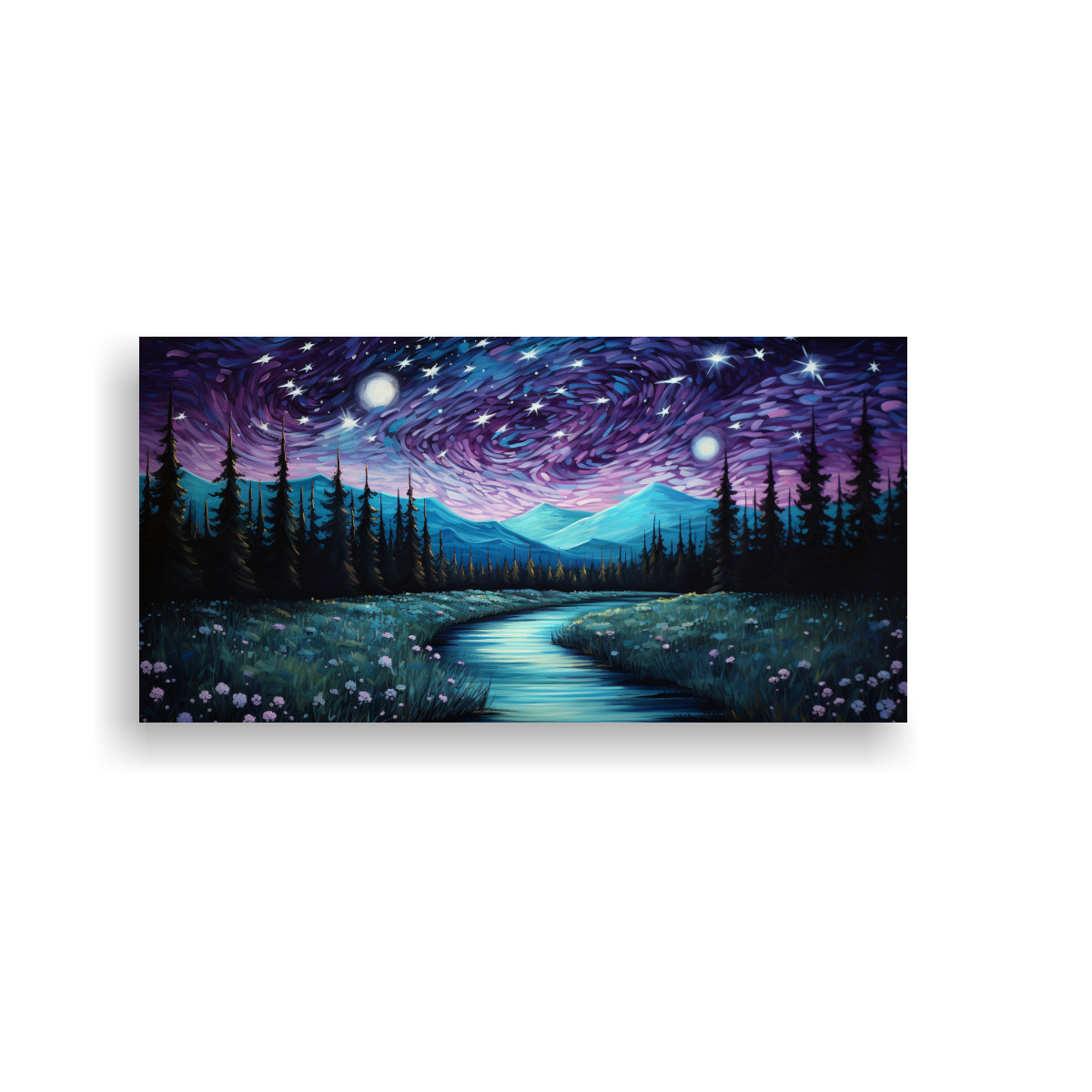 Cuadro Abstracto Con Finas Líneas En Colores Estrella De Noche Púrpura Y Turquesa Inspirados En La Naturaleza.
