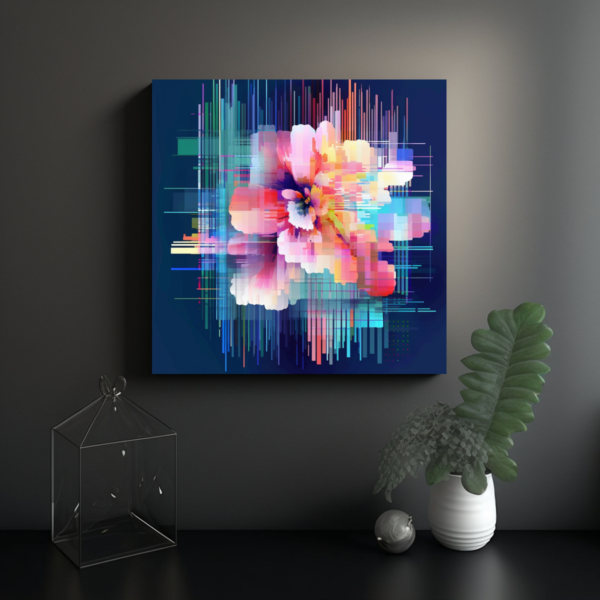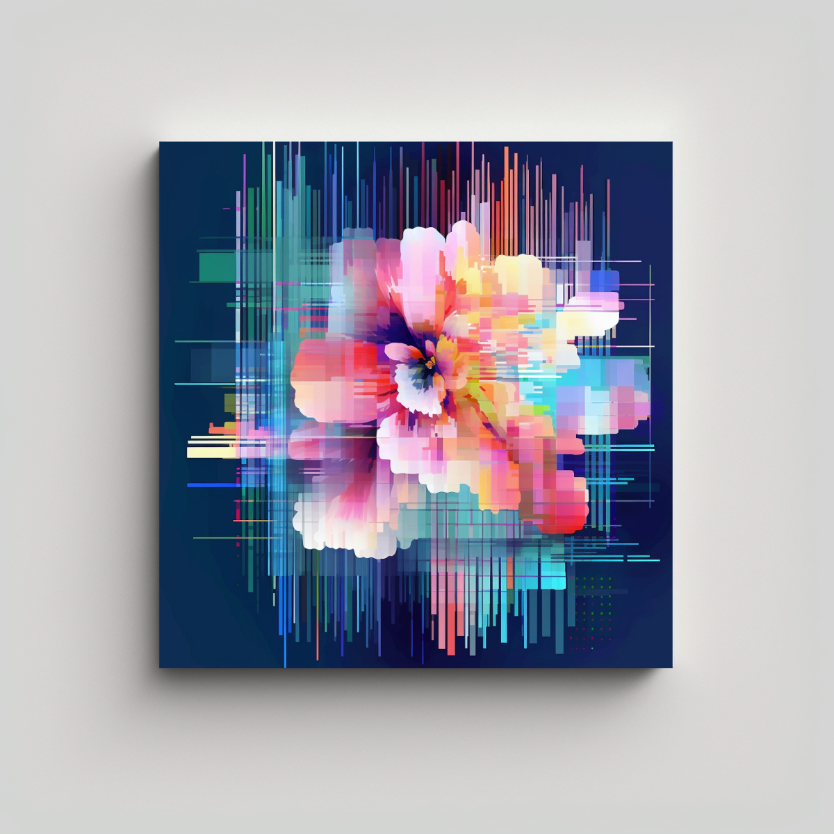 Cuadro Abstracto Con Forma De Flor: Arte Visual Glitch En Equilibrio