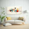 Este cuadro abstracto contrasta minimalista moderno sería ideal para decorar un salón con muebles de tonos neutros, como beige, blanco o gris Puedes colocarlo sobre un sofá o una repisa para resaltar el contraste de colores También podría ser el punto focal de un dormitorio minimalista, combinándolo con ropa de cama blanca y accesorios en tonos plateados o turquesa ¡Dale estilo y originalidad a tu espacio con este cuadro de DecoCuadros!