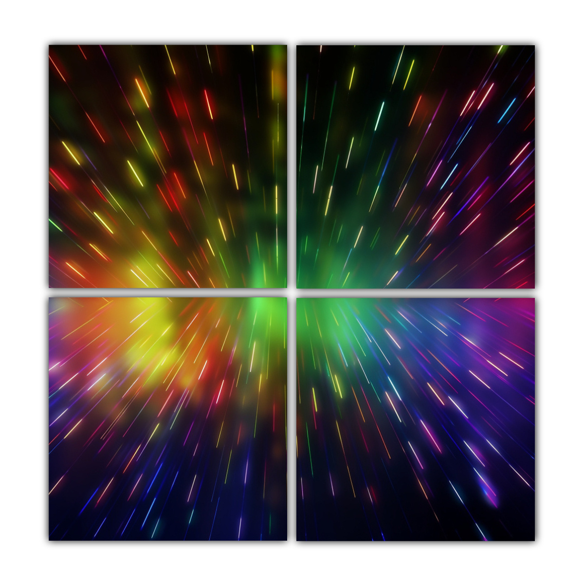 Cuadro Abstracto De 4 Lienzos Con Diseño Moderno De Luces Y Láseres De Arco Iris