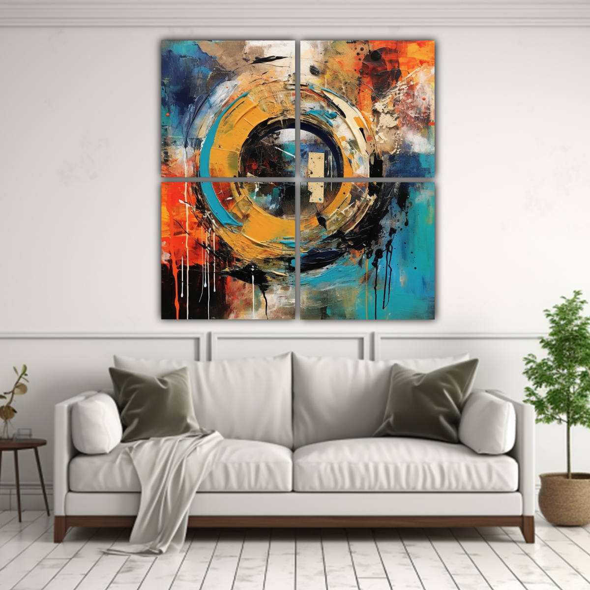 Decora tus espacios con el cuadro abstracto de 4 telas en bastidor con colores y texturas contrastantes Calidad y precio incomparables Entrega rápida y envío express a regiones