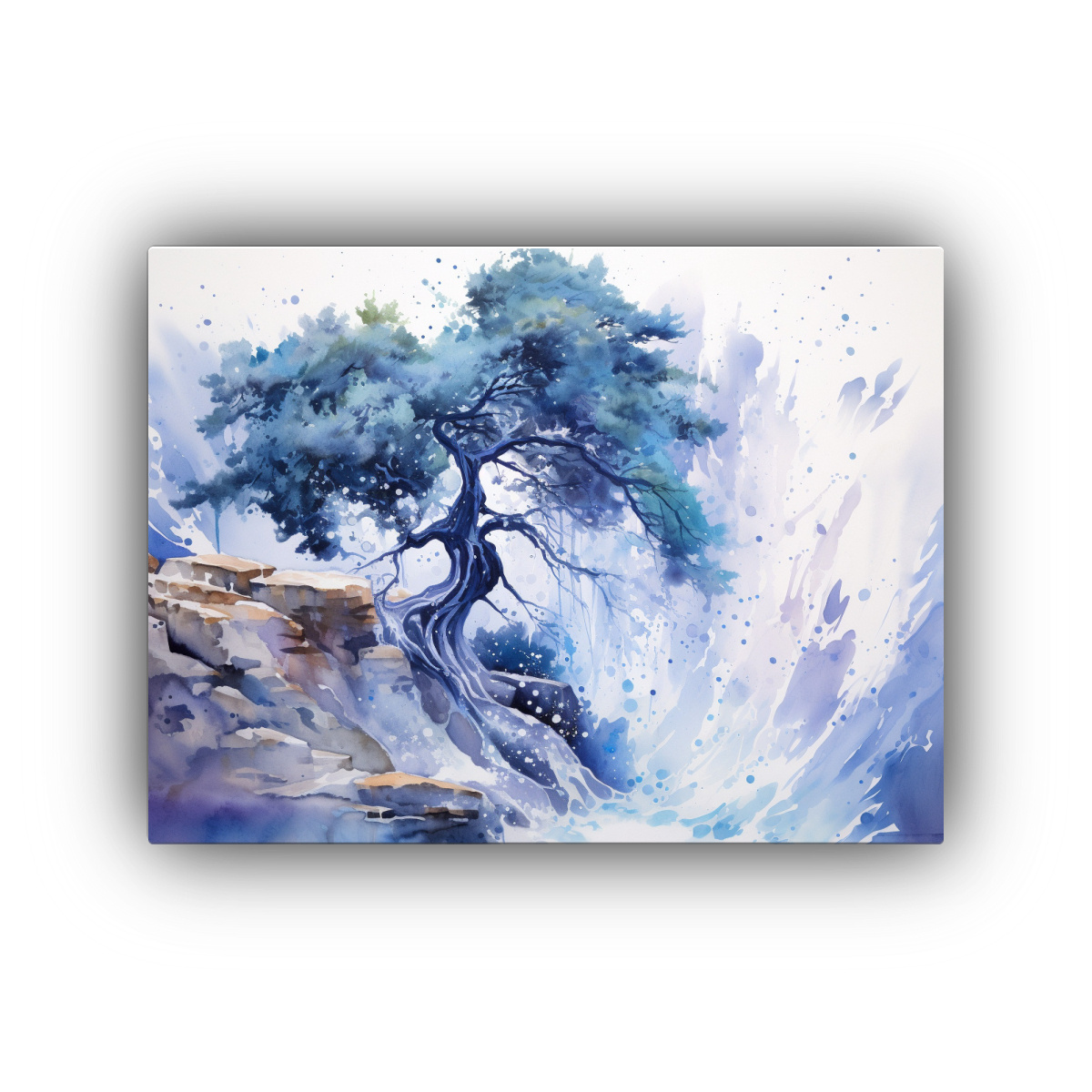 Este cuadro abstracto de árbol de enebro en tonos azules es ideal para colocarlo en la sala de estar sobre un sofá de color neutro, creando un contraste elegante y moderno También puede ser el punto focal en un pasillo amplio ¡Dale vida a tus espacios!