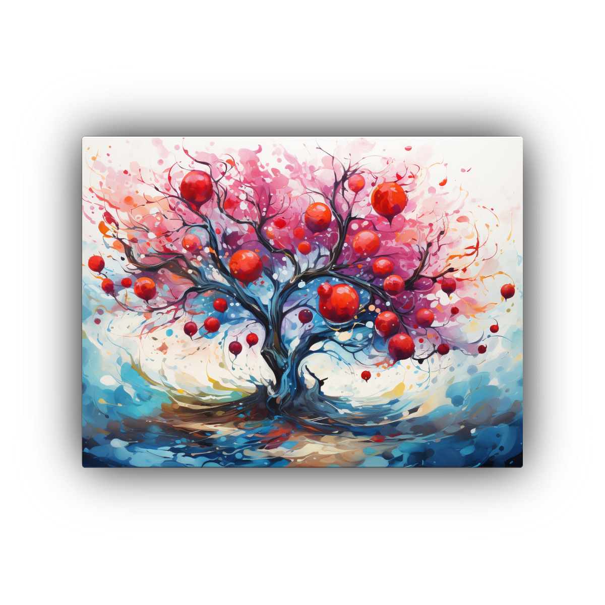Cuadro Abstracto De árbol De Granada En Colores Rojo Y Azul