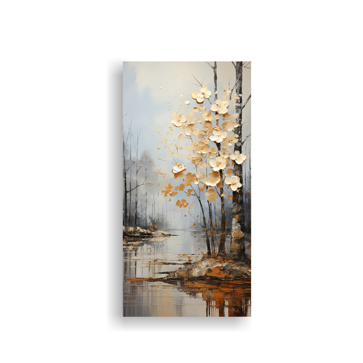 Este cuadro abstracto de árboles en plata y blanco sería perfecto para decorar tu sala de estar Sus colores plateado, azul marino grisáceo, chocolate, dorado, gris y beige brindarán un toque elegante y sofisticado a tus paredes Combínalo con muebles en tonos neutros y accesorios en plata para lograr una estética moderna y minimalista ¡Transforma tu espacio con este cuadro de alta calidad!