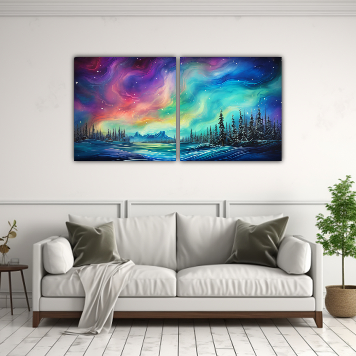 Dale un toque de elegancia y modernidad a tus espacios con este Cuadro abstracto de Auroras Boreales en tonos azules Envíos rápidos y gratuitos en Santiago, ¡adquiérelo ya!