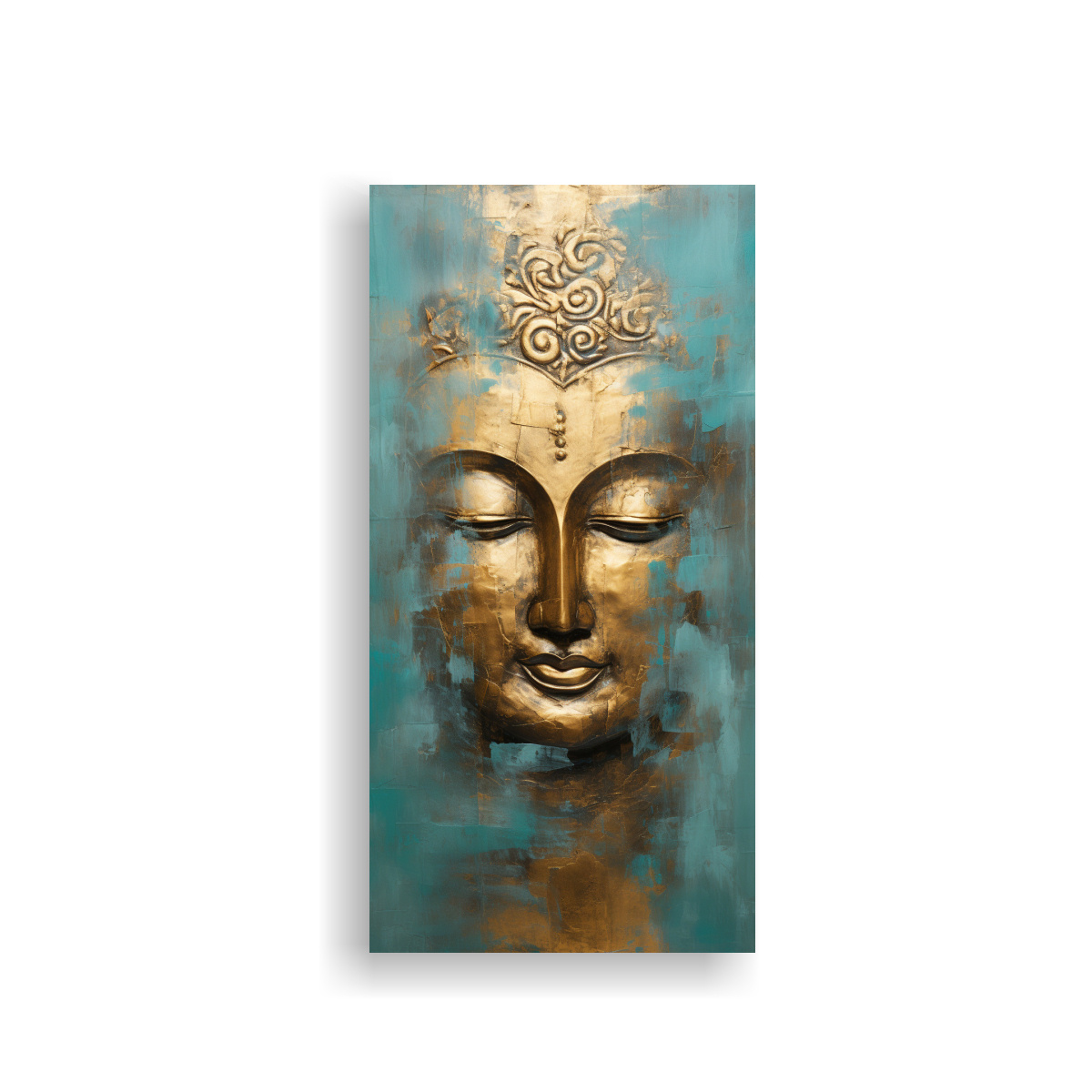 Cuadro Abstracto De Buda En Tonos Dorados Y Turquesa, Estilo óleo.