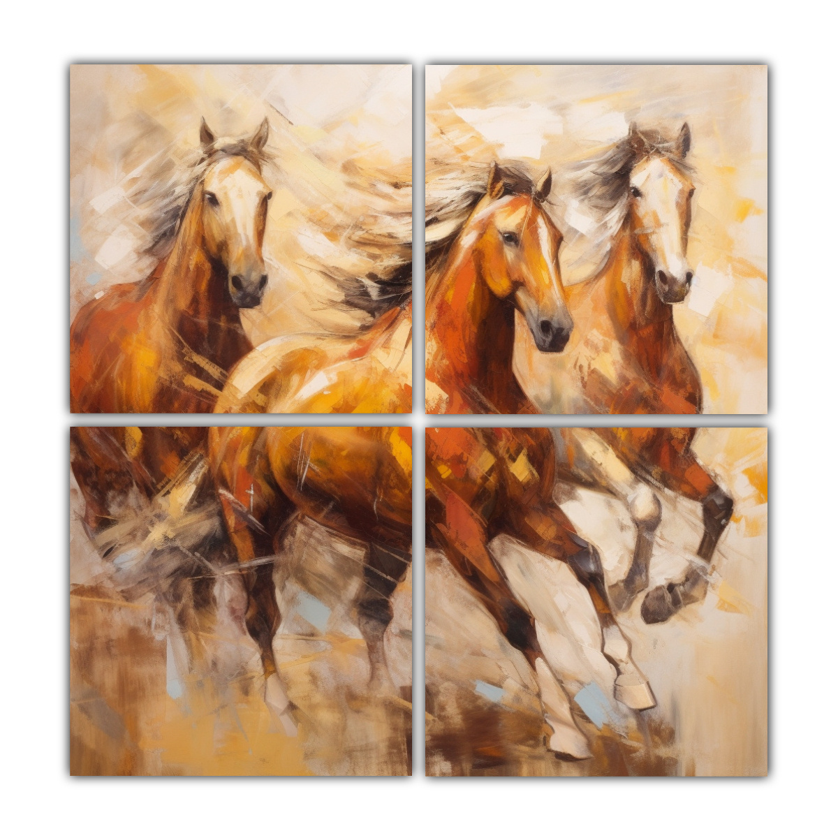 Cuadro Abstracto De Caballos Marrones Corriendo