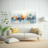 Este cuadro es ideal para decorar una sala de estar moderna o un estudio Colócalo sobre un sofá de color neutro para resaltar los tonos azules y naranjas Combínalo con cojines en los colores del cuadro para lograr una armonía visual