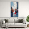 Este cuadro abstracto de ciudad pintado con azul monocromático es ideal para decorar una sala de estar moderna Colócalo sobre un sofá de color neutro para resaltar su belleza y combínalo con cojines en tonos plateados y turquesas para lograr una armonía perfecta Agrega una lámpara de pie con base plateada y cortinas grises para completar la decoración ¡Crea un ambiente sofisticado y contemporáneo con este cuadro de DecoCuadros!