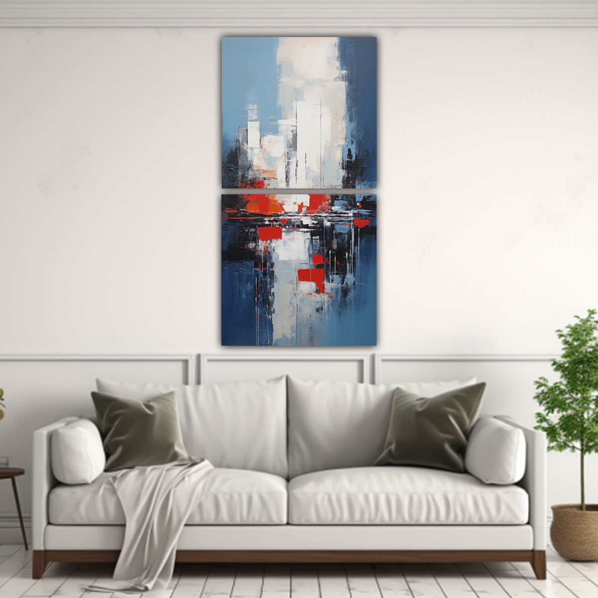 El cuadro abstracto de ciudad pintado con azul monocromático de DecoCuadros es perfecto para agregar un toque moderno y elegante a tu espacio Con colores plateado, azul marino grisáceo, gris, turquesa y carmesí, este cuadro vanguardista es un diseño exclusivo de nuestra tienda Impreso en tela de alta calidad y con bastidores de madera, garantizamos la mejor calidad del mercado a precios económicos Con envío gratis en Santiago y entregas rápidas a nivel nacional, DecoCuadros es tu mejor opción para decorar tu hogar con estilo