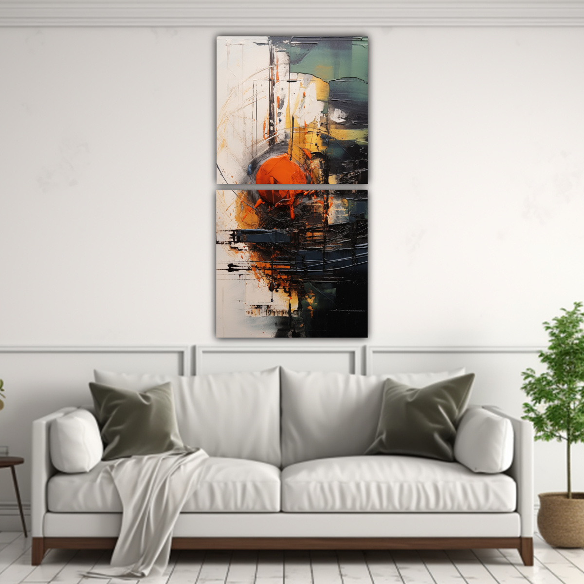 Decora tu espacio con nuestro set de 2 cuadros de armonía de colores, una pintura abstracta con tonos amarillo, azul y rojo Nuestros diseños exclusivos se adaptarán a cualquier estilo de decoración ¡Envío gratuito en Santiago y envíos express a regiones!