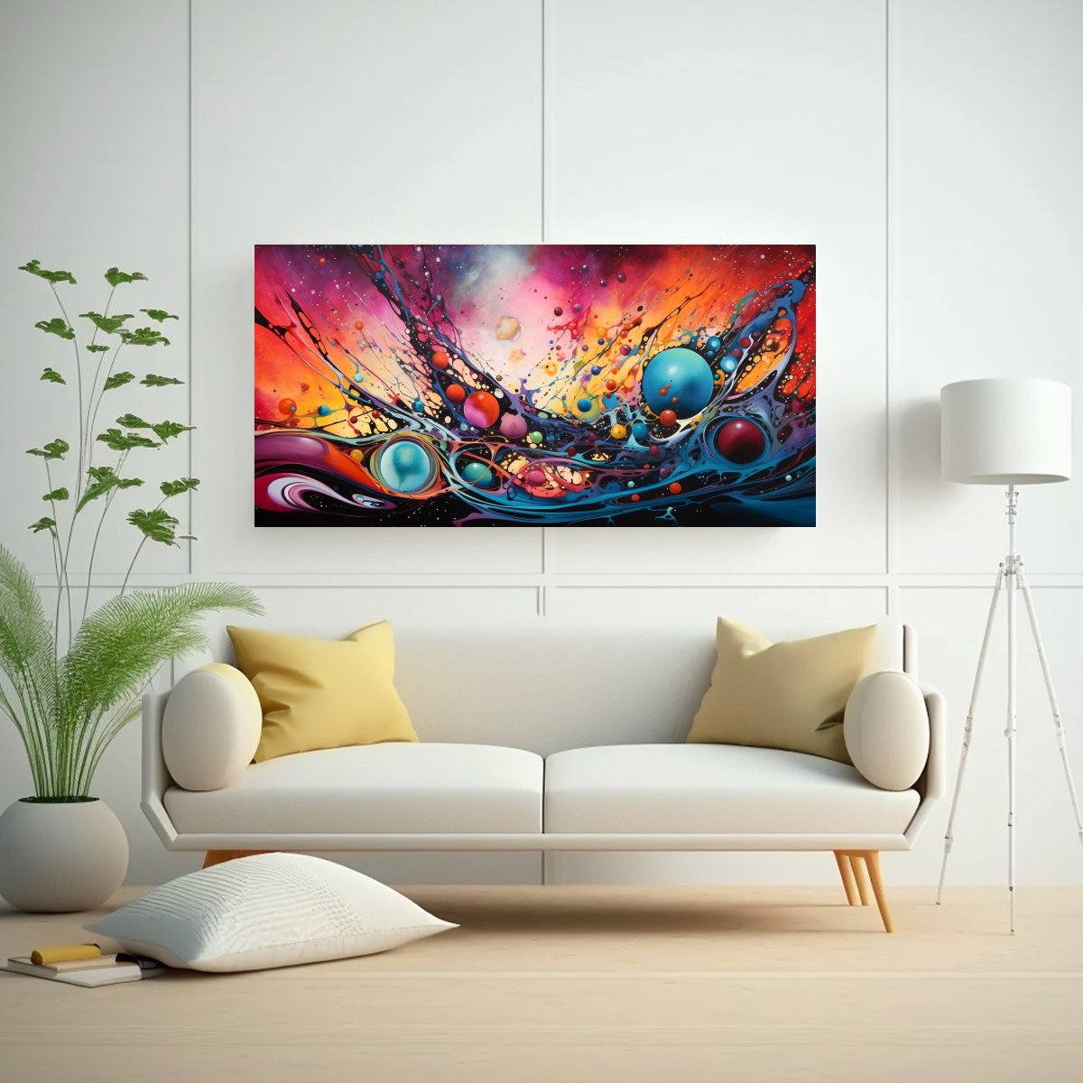 Cuadro Abstracto De Comedor Con Fusión De Surrealismo Y Colores Cósmicos