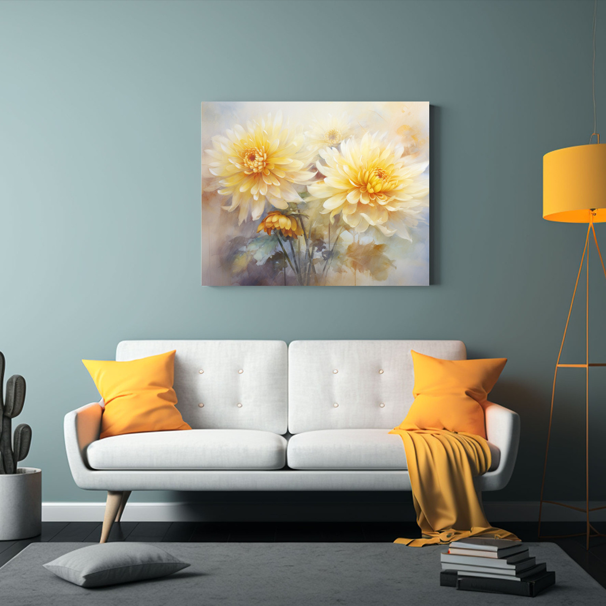 DecoCuadros ofrece cuadros exclusivos con diseños únicos para oficinas Añade sofisticación con este cuadro cálido de crisantemos en tonos dorados Ideal para combinar con muebles en tonos neutros o grises para un estilo elegante y moderno
