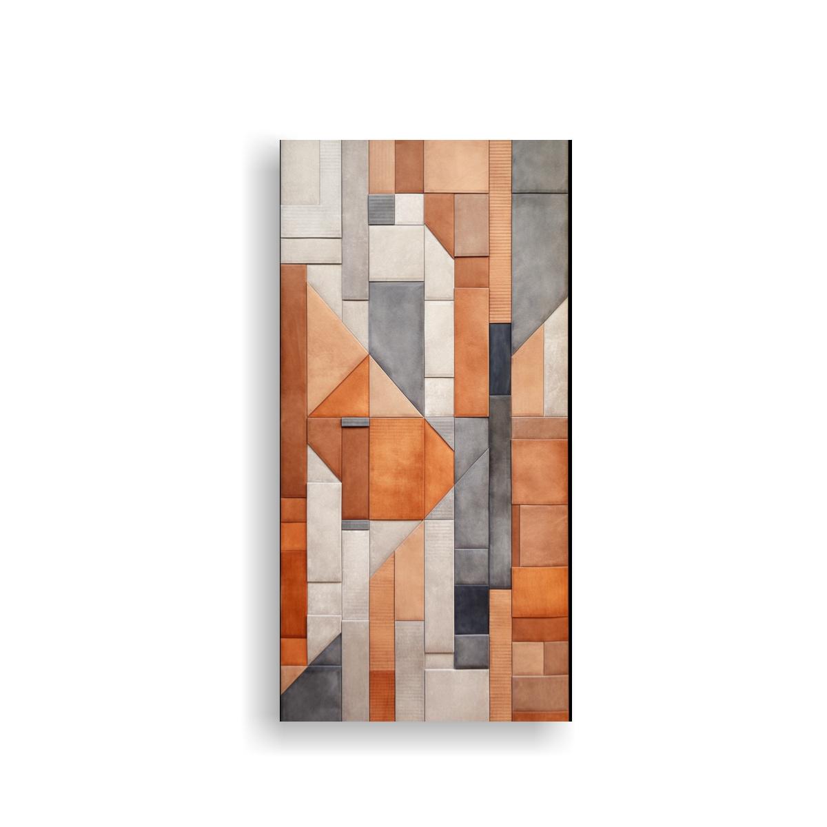 Cuadro Abstracto De Cuero Y Lino En Tonos Gris Y Marrón, Arte Moderno Geométrico
