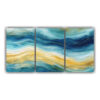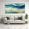 Cuadro Abstracto De Diseño Minimalista Con Patrón De Olas Marinas En Tres Telas En Bastidor Moderno
