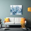 Coloca este cuadro abstracto de edificios en azul y blanco en tu sala de estar para crear un ambiente urbano y elegante Combínalo con muebles en tonos neutros para resaltar su belleza y añadir un toque de color a la decoración ¡El resultado será un espacio moderno y con estilo!