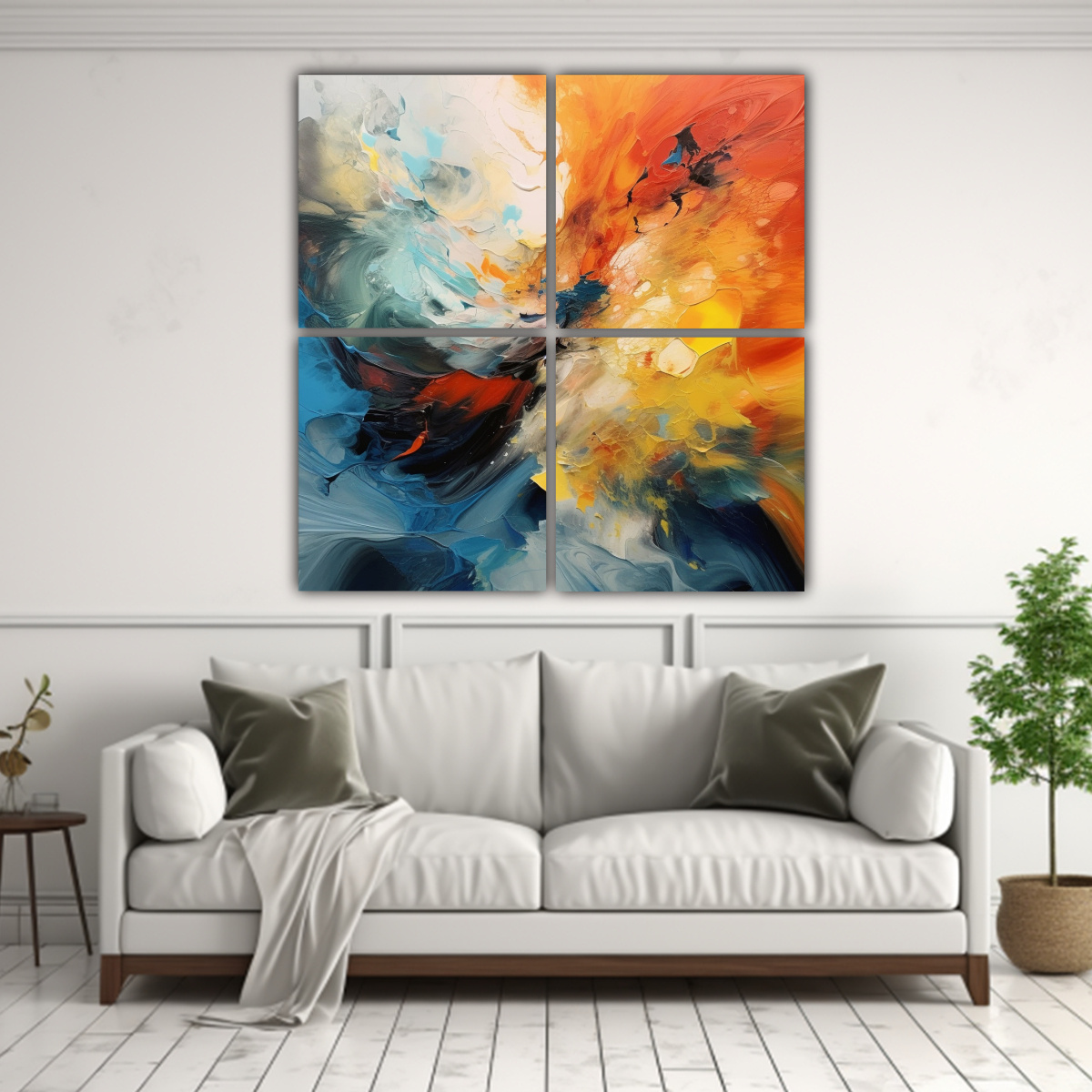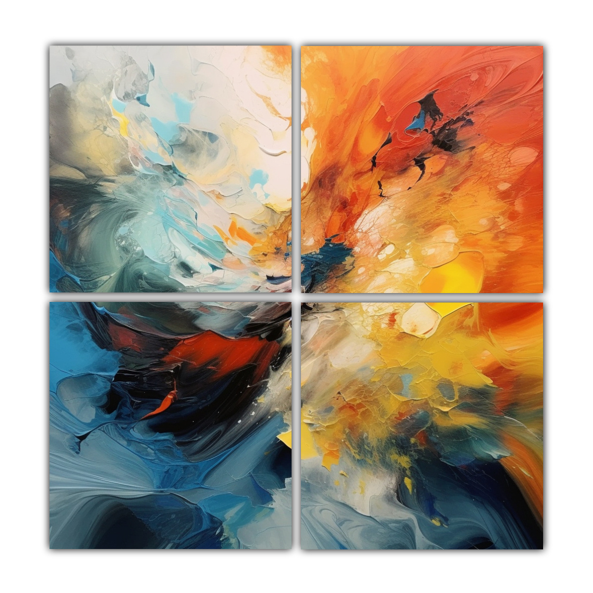 DecoCuadros ofrece el cuadro abstracto estilo armonía cromática en bastidor, con colores como el Azul Marino grisaceo, Coral, Plateado, Gris, Carmesí, Amarillo Claro, Menta y Turquesa Nuestros cuadros tienen diseños exclusivos y son impresos en tela de alta calidad Resalta tu decoración con este moderno cuadro