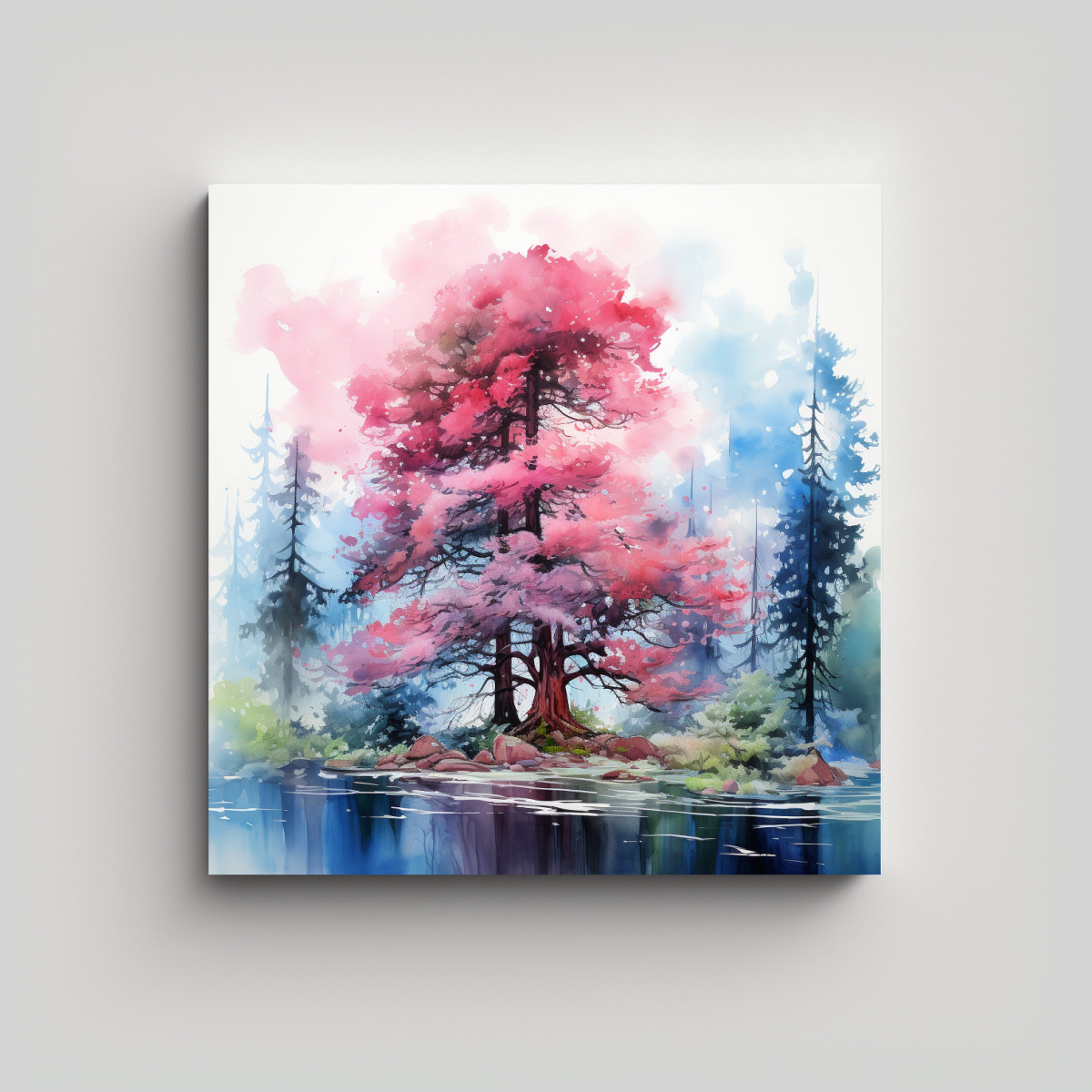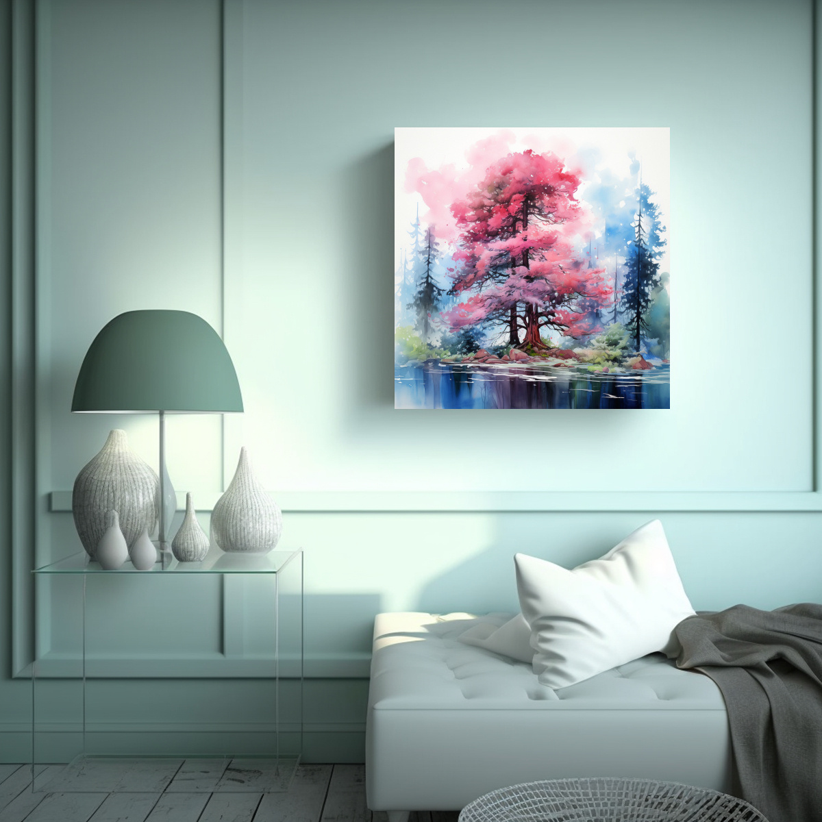 Cuadro Abstracto De Expresión Bonito De Un Árbol Secuoya En Colores Rosa Y Azul