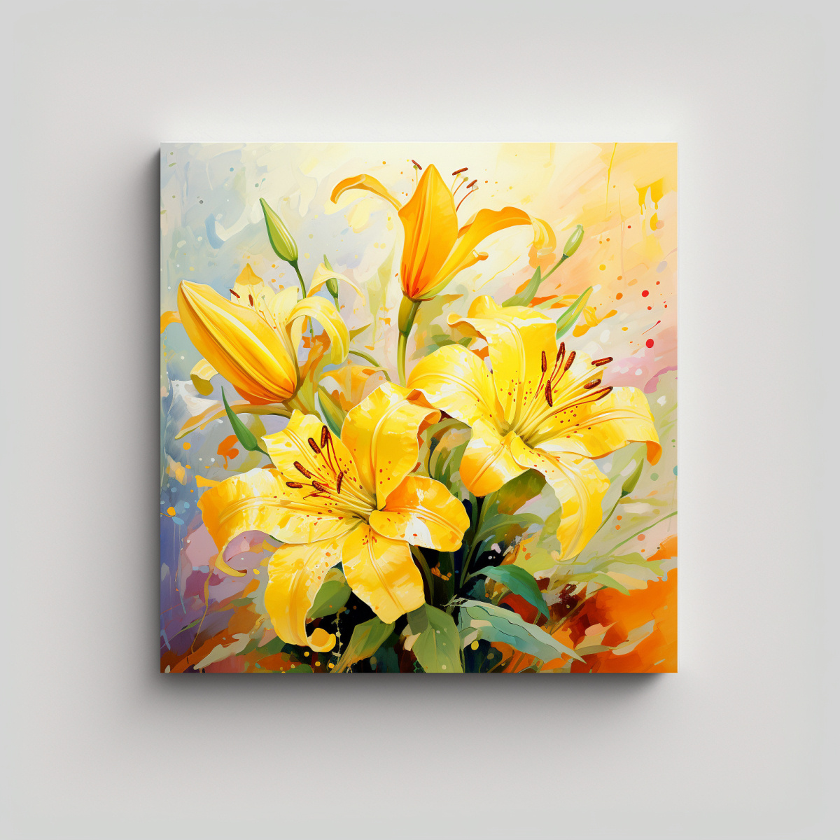 Cuadro Abstracto De Flores Amarillas Y Colores Acuarela En Bastidor De Vanguardia Living A Lilies