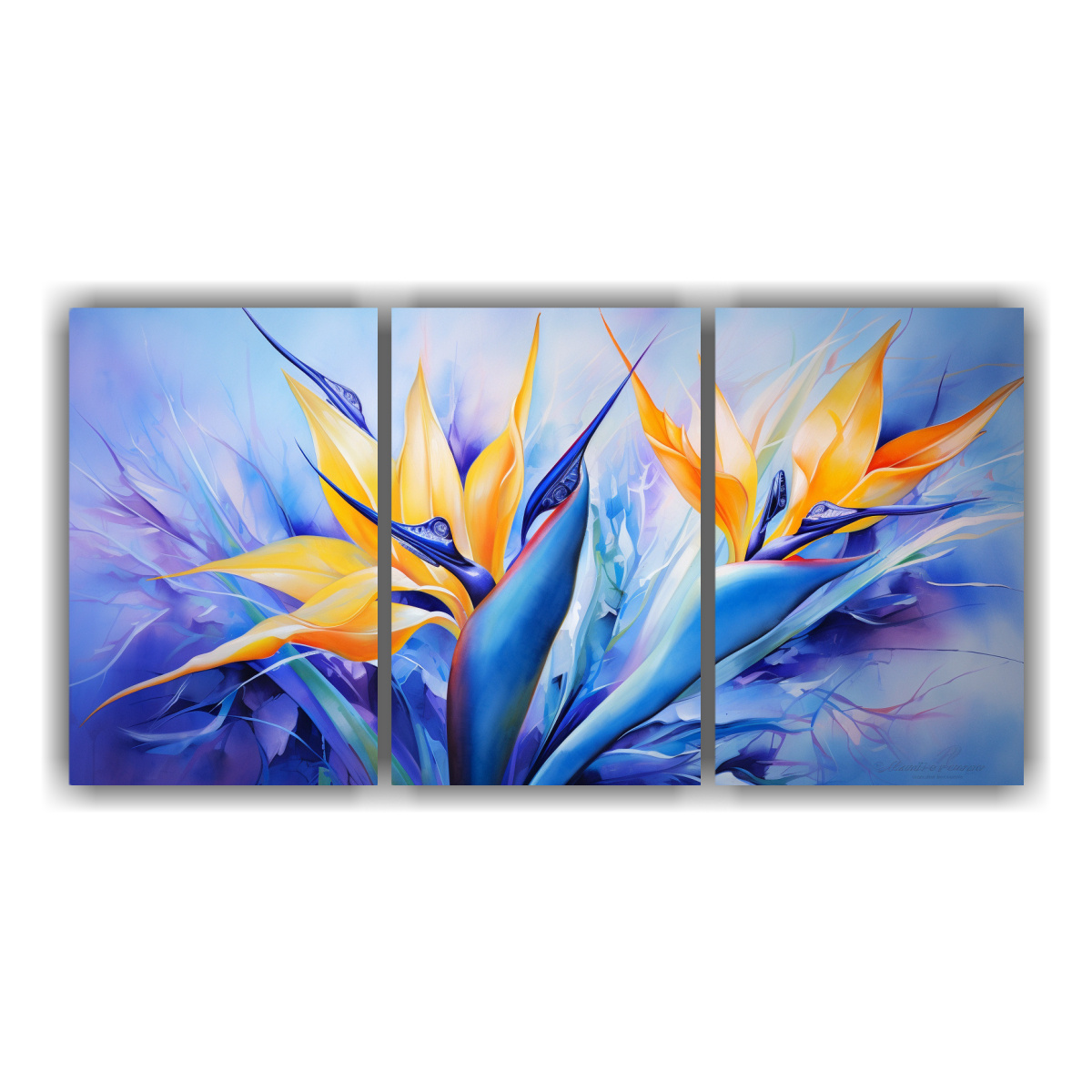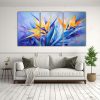 Cuadro Abstracto De Flores Ave Del Paraíso En Tonos Azules