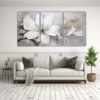 Cuadro Abstracto De Flores Blancas Estilo Tres Cuadros Abstracción